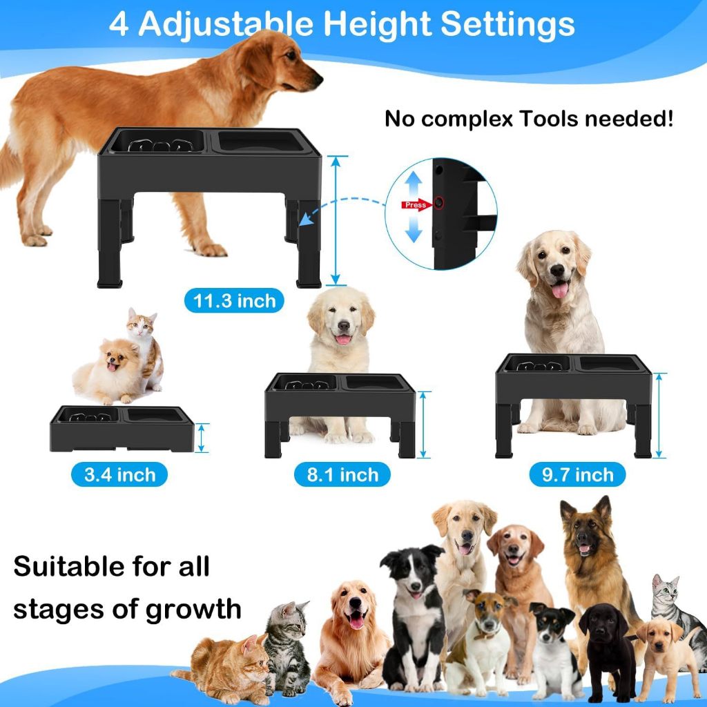 2 IN 1 Adjustable Dog and Cat Bowl With Stand Anti-Spill Slow Feeder Foldable Stainless Steel Pet Food Dish for Dogs and Cats