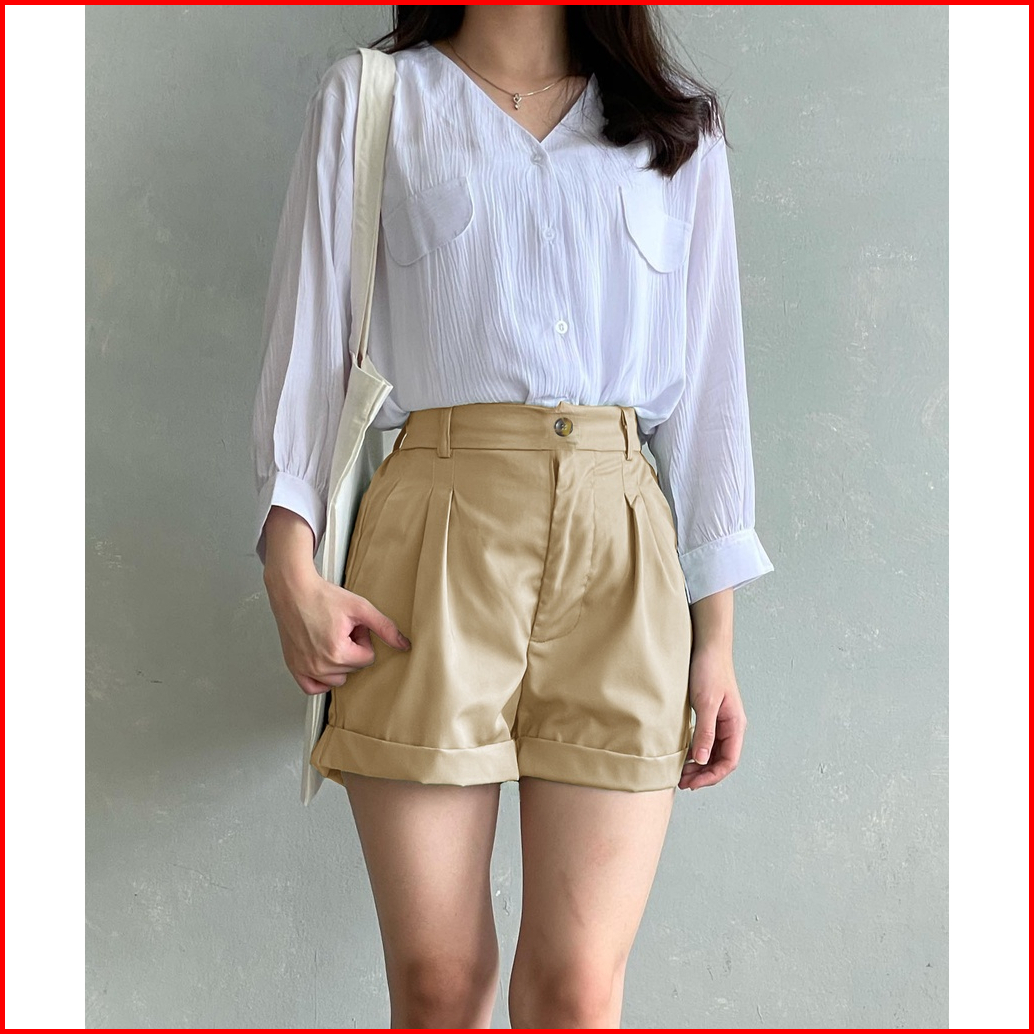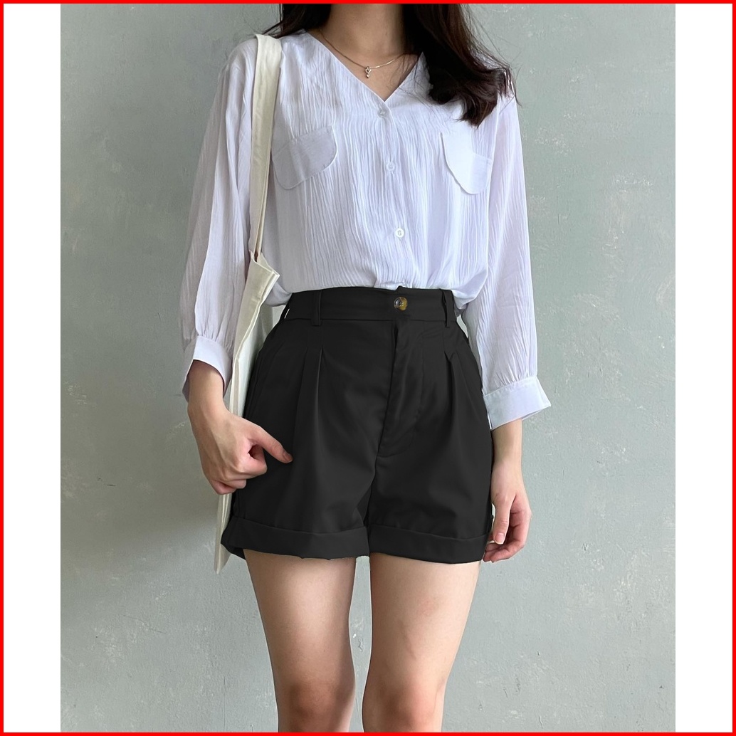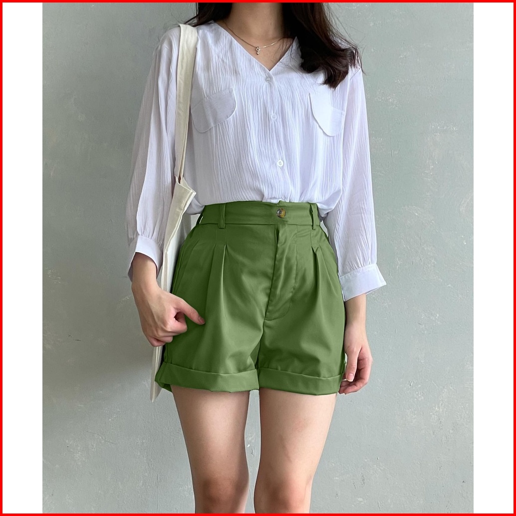 Tiara Pants - Celana Pendek Santai Wanita Bahan Katun - Highwaist Hotpants Hk-21 Size Fit To L