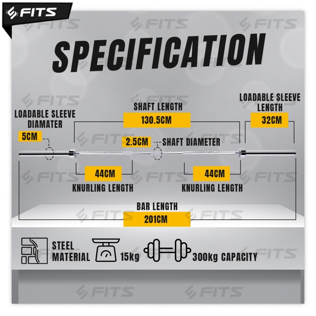 FITS Woman Straight Bar Barbel 15Kg Gym Fitness Crossfit Weightlifting