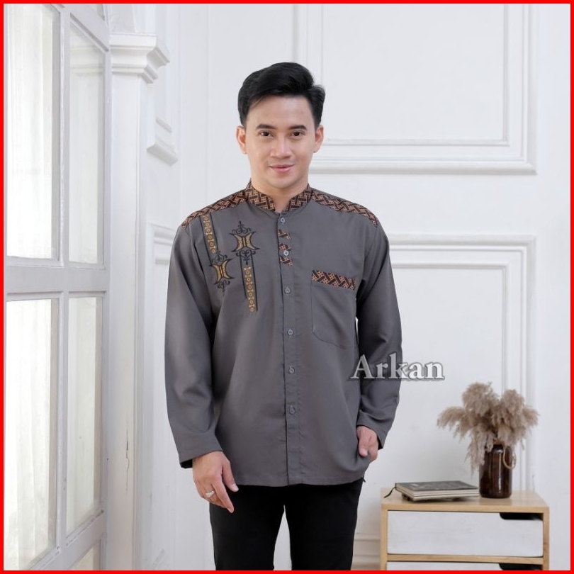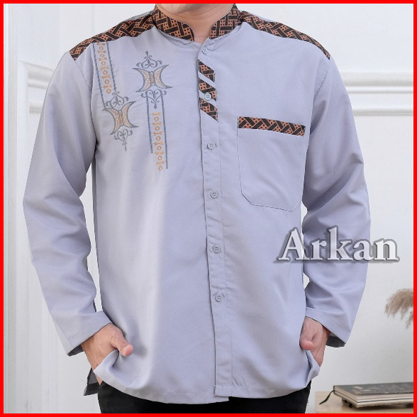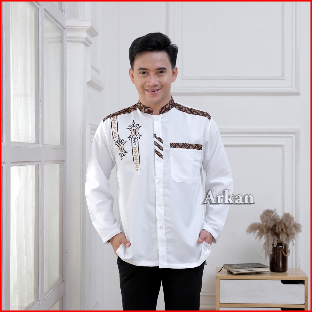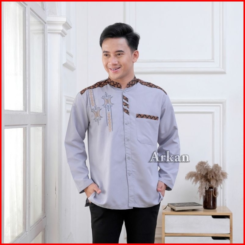 Baju Kemeja Koko Pria Dewasa Lengan Panjang Koko Bordil Kombinasi Batik M L Xl Xxl