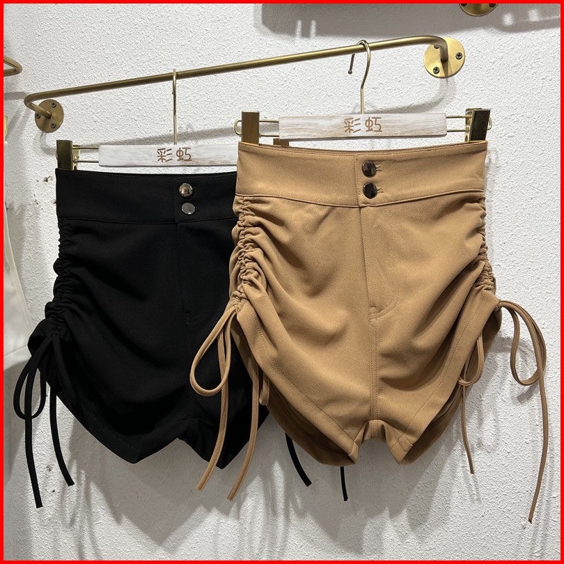 H7 Sp5 6 178 Korean Short Pants Black Tali Serut Highwaist Celana Pendek Pinggang Tinggi Hotpants