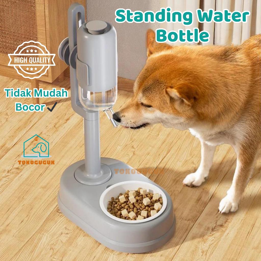 Tempat Makan dan Botol Minum Standing Anjing Kucing / Pet Water Feeder With Stainless Steel Bowl F03