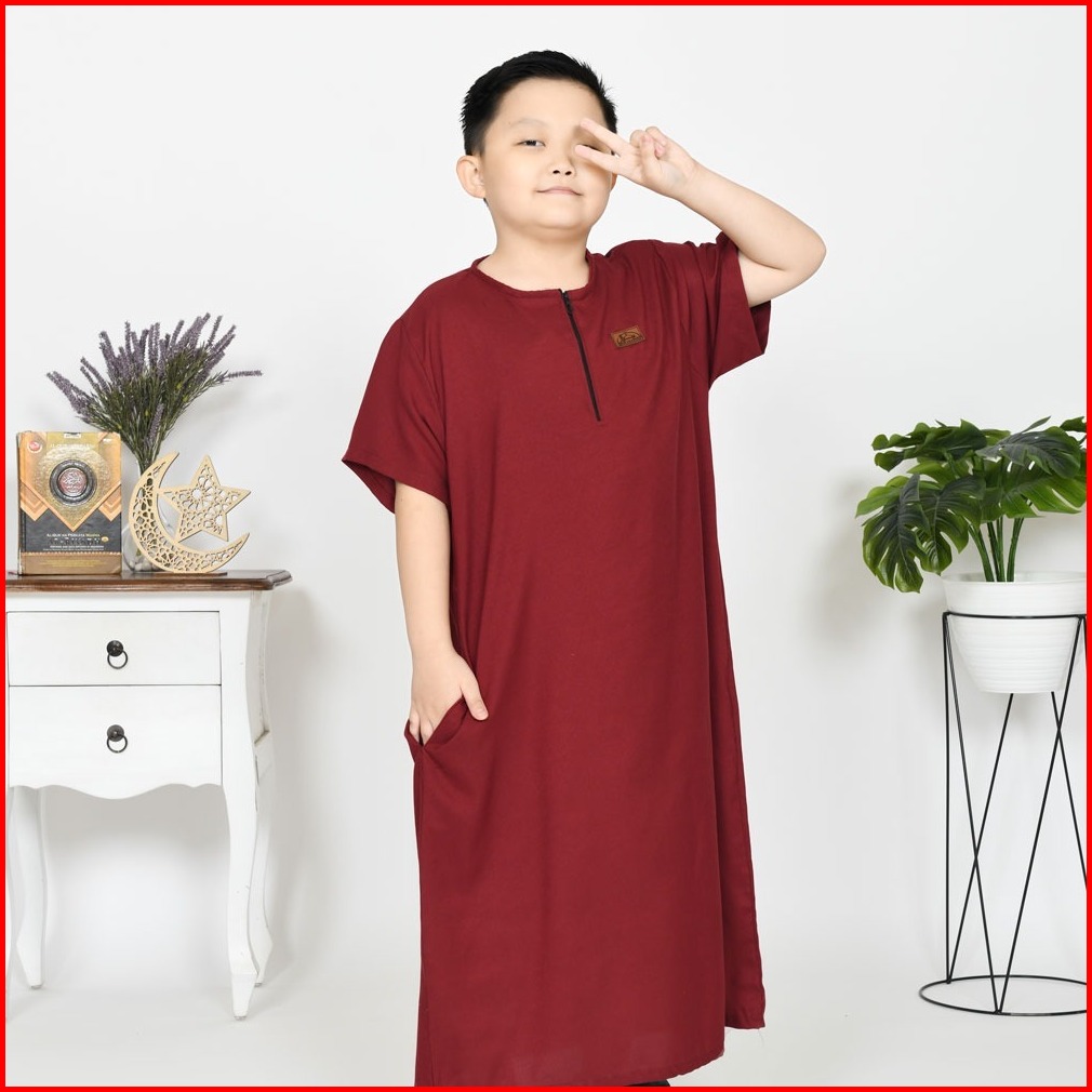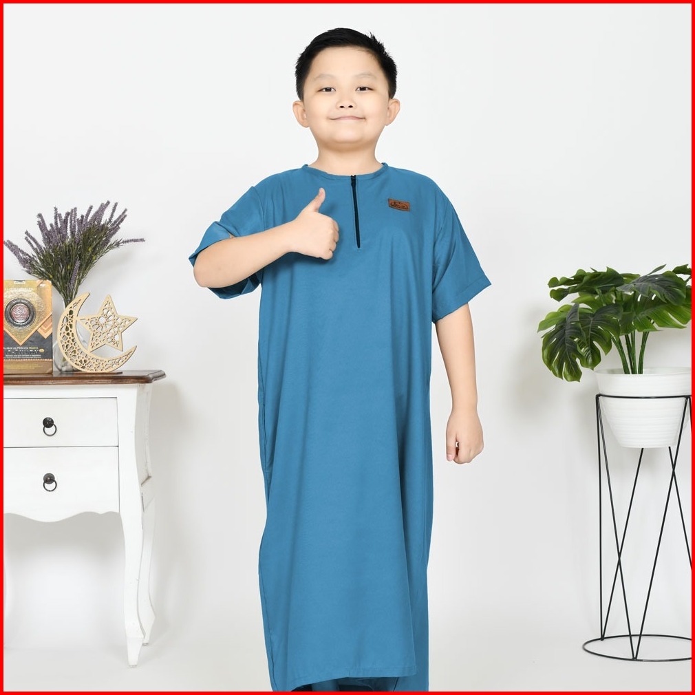 Jubah Pria Gamis Umar Premium Lengan Pendek Busana Muslim Polos Anak 1-12 Tahun Gratis Peci Tasbih