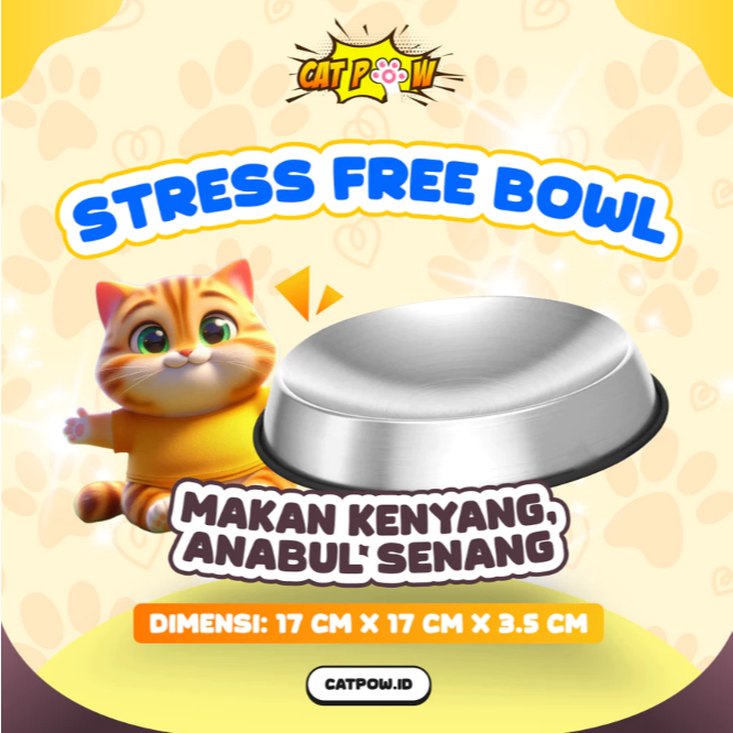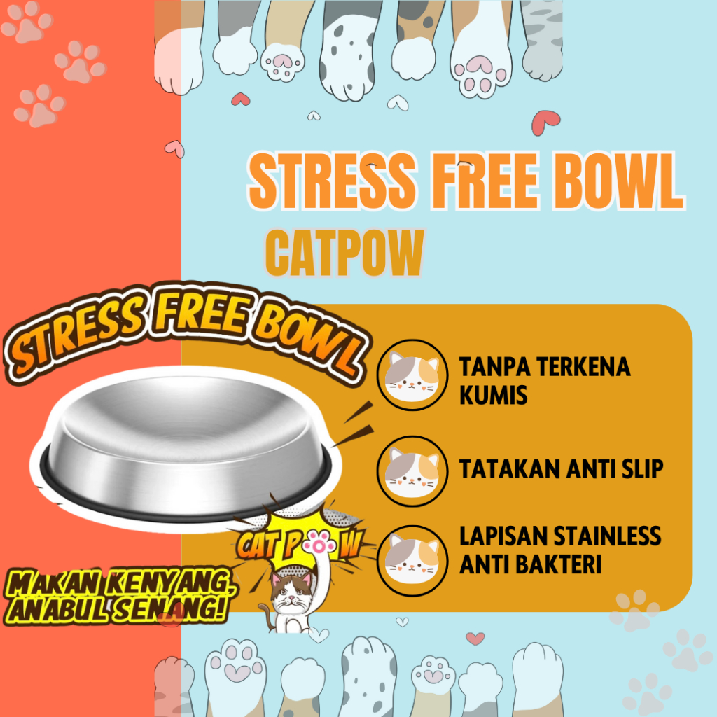 Catpow Stress Free Bowl for Cat and Dog Mangkuk Piring Makanan Kucing Anjing Feeding Tray Stainless Pet Feeder Mangkok Wadah Tempat Makan Bulat Anti Slip Selip Karat Stress Semut