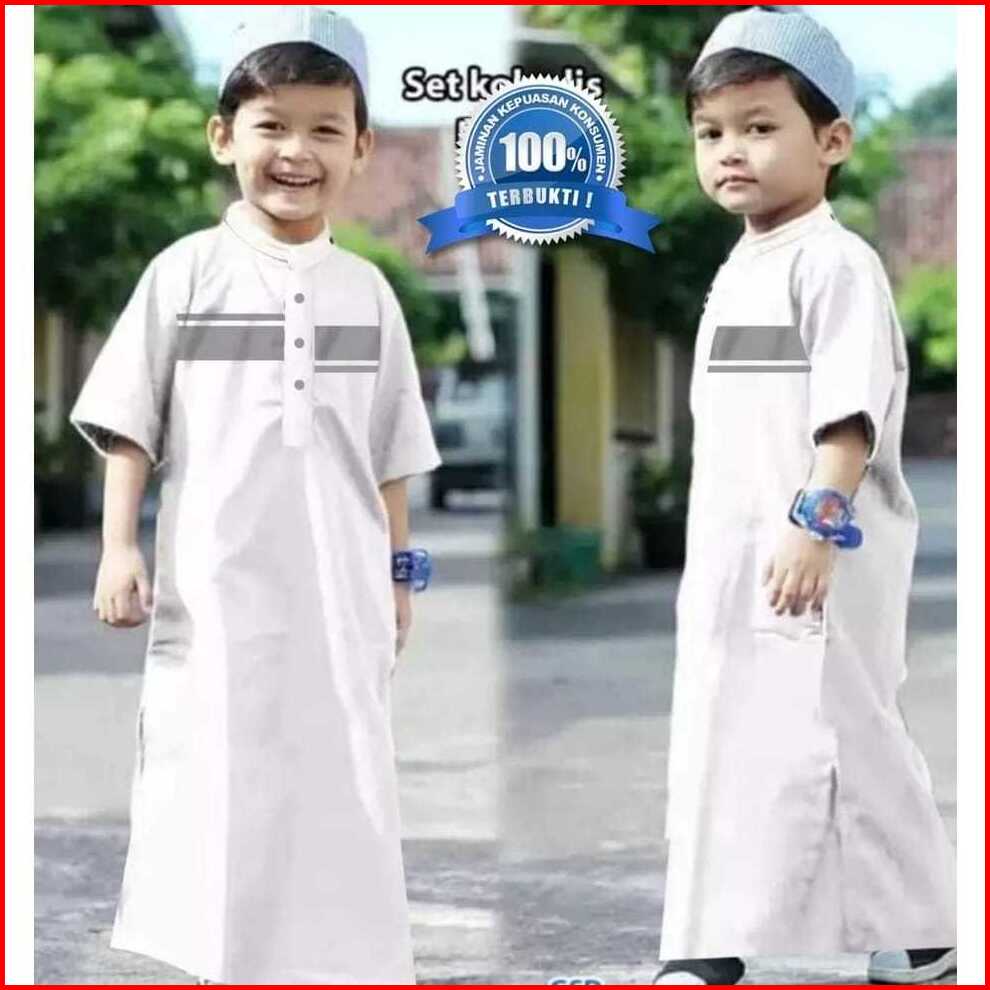 Baju Koko Jubah Anak Laki Laki 4 - 11 Tahun Baju Gamis Muslim Anak Cowok Motif List