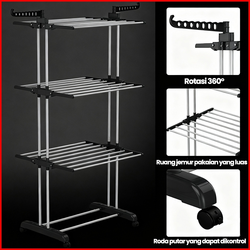 Rak Jemuran Baju Lipat Stainless Roda Rak Jemuran Handuk 1 4 Susun Minimalis Tahan Beban 50 Kg