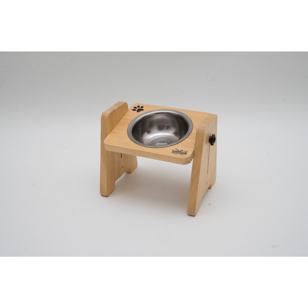 Tempat Makan Kucing Anjing Kayu Pinus Adjustable
