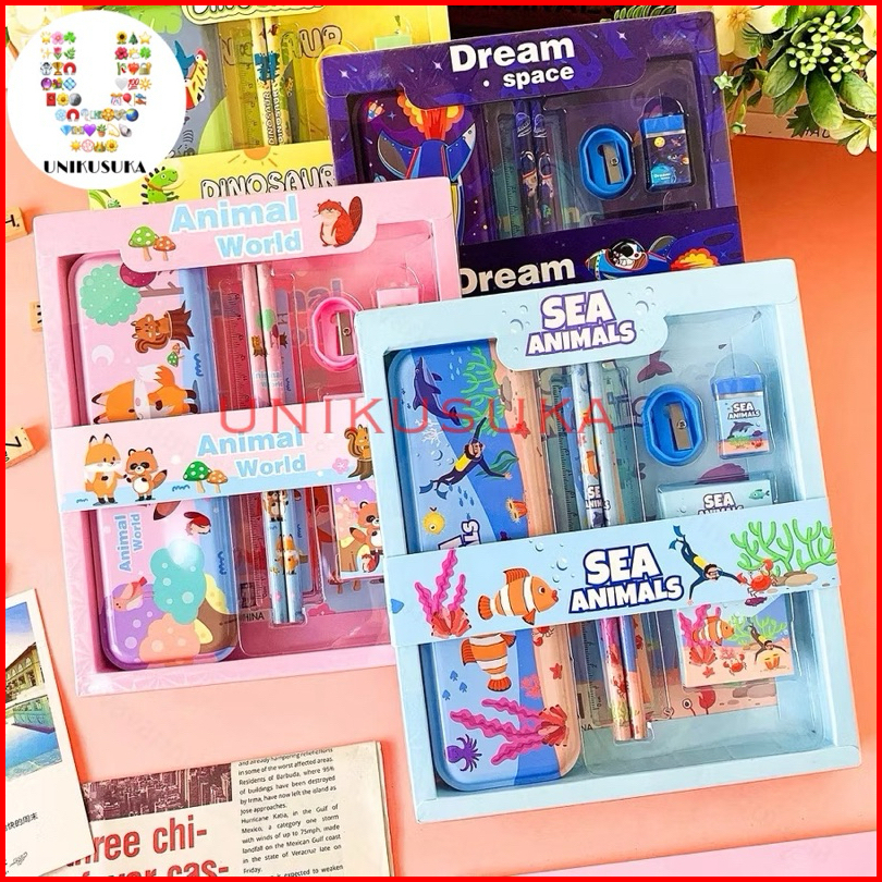 Unikusuka Stationery Set 7 In 1 Paket Alat Tulis Karakter Lengkap 7in1 Stationery Kotak Pensil Sekolah Set