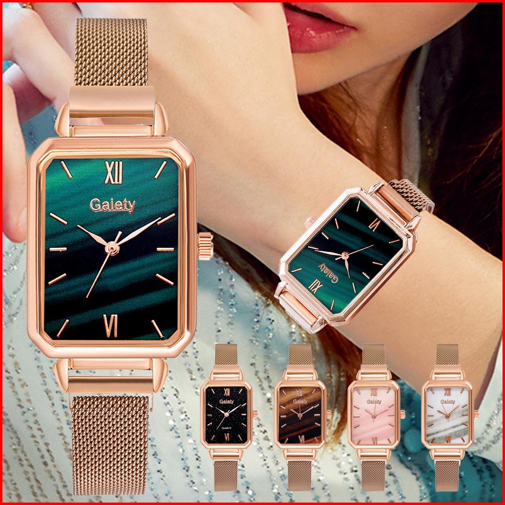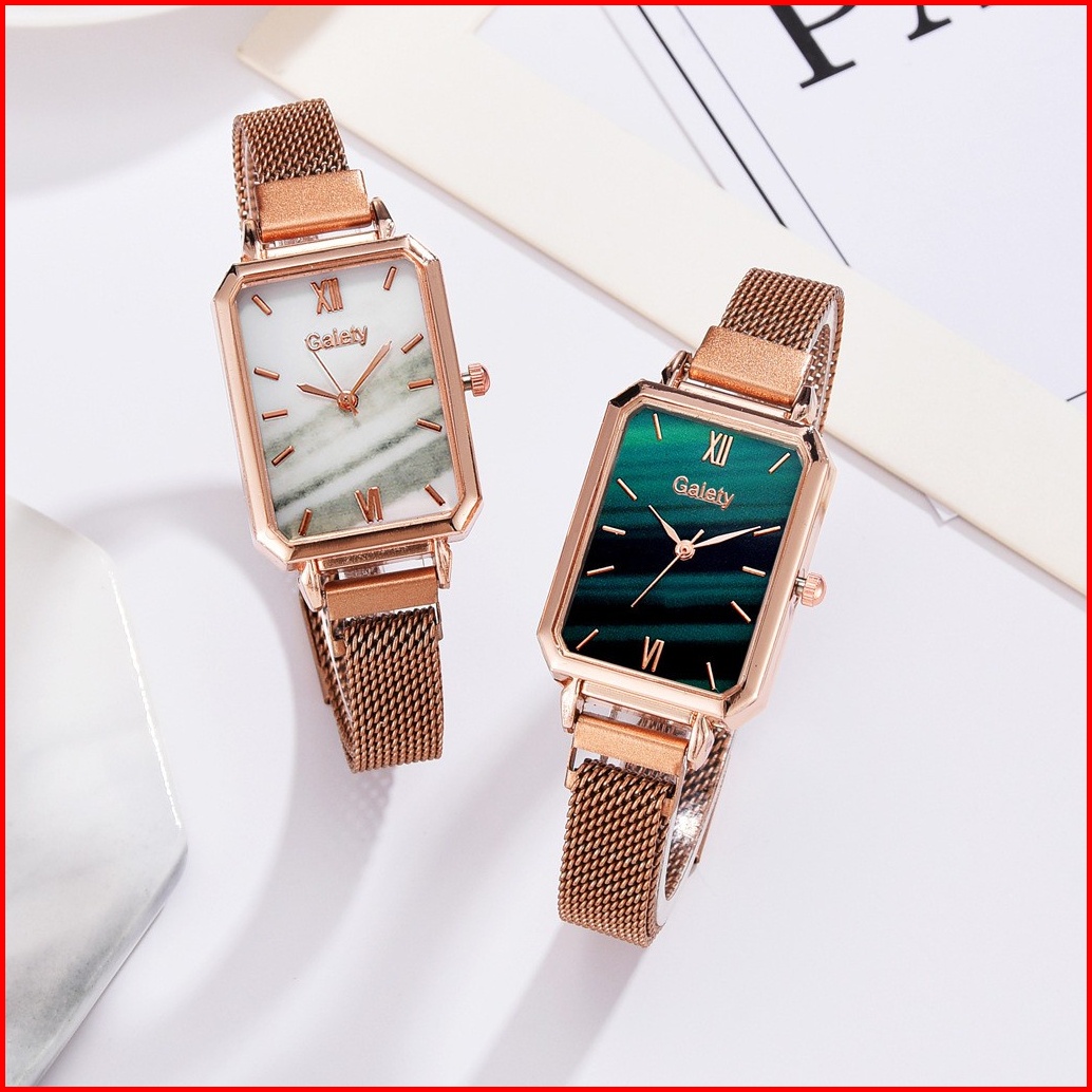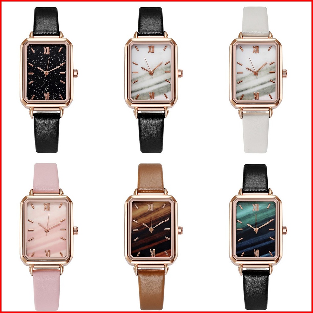 Jam Tangan Wanita Kotak Quartz Analog Strap Leather Fashion Import Rantai Analog Model Petak Perempuan W210 W211