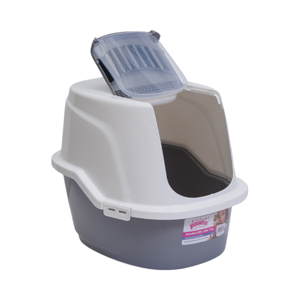 Pet Kingdom Pawise 48x38x40 cm Hooded Kitty Toilet Kucing - Abu-Abu/Putih Kotak Pasir Tempat Pup Toilet Wadah Feses Perlengkapan Peliharaan