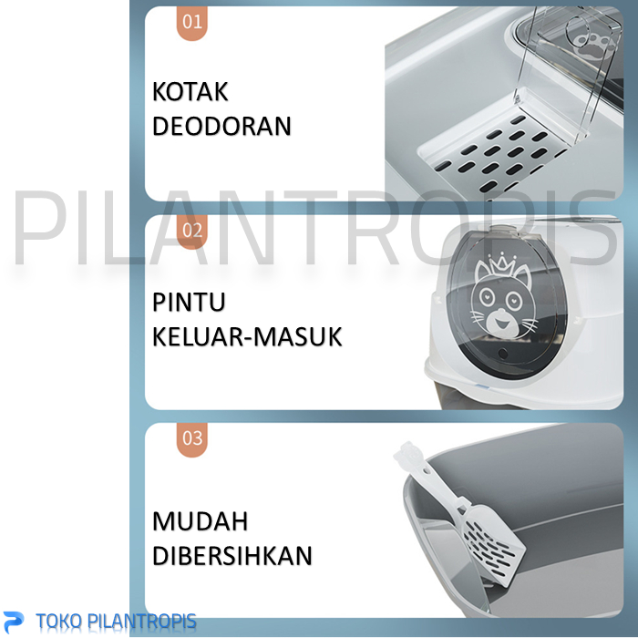 CAT LITTER BOX KUCING BESAR JUMBO TERTUTUP 38X57X41 CM TEMPAT PUP KOTORAN POOP LITER BOX KUCING BAK PASIR KUCING TOILET WC KUCING