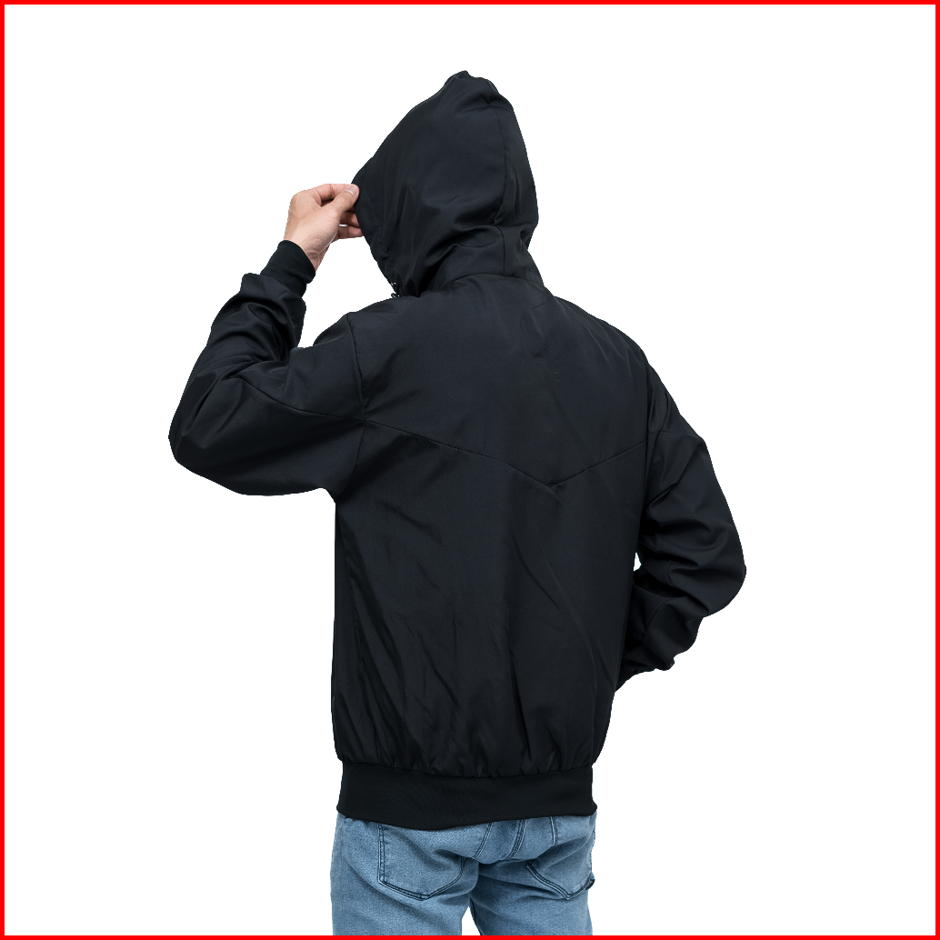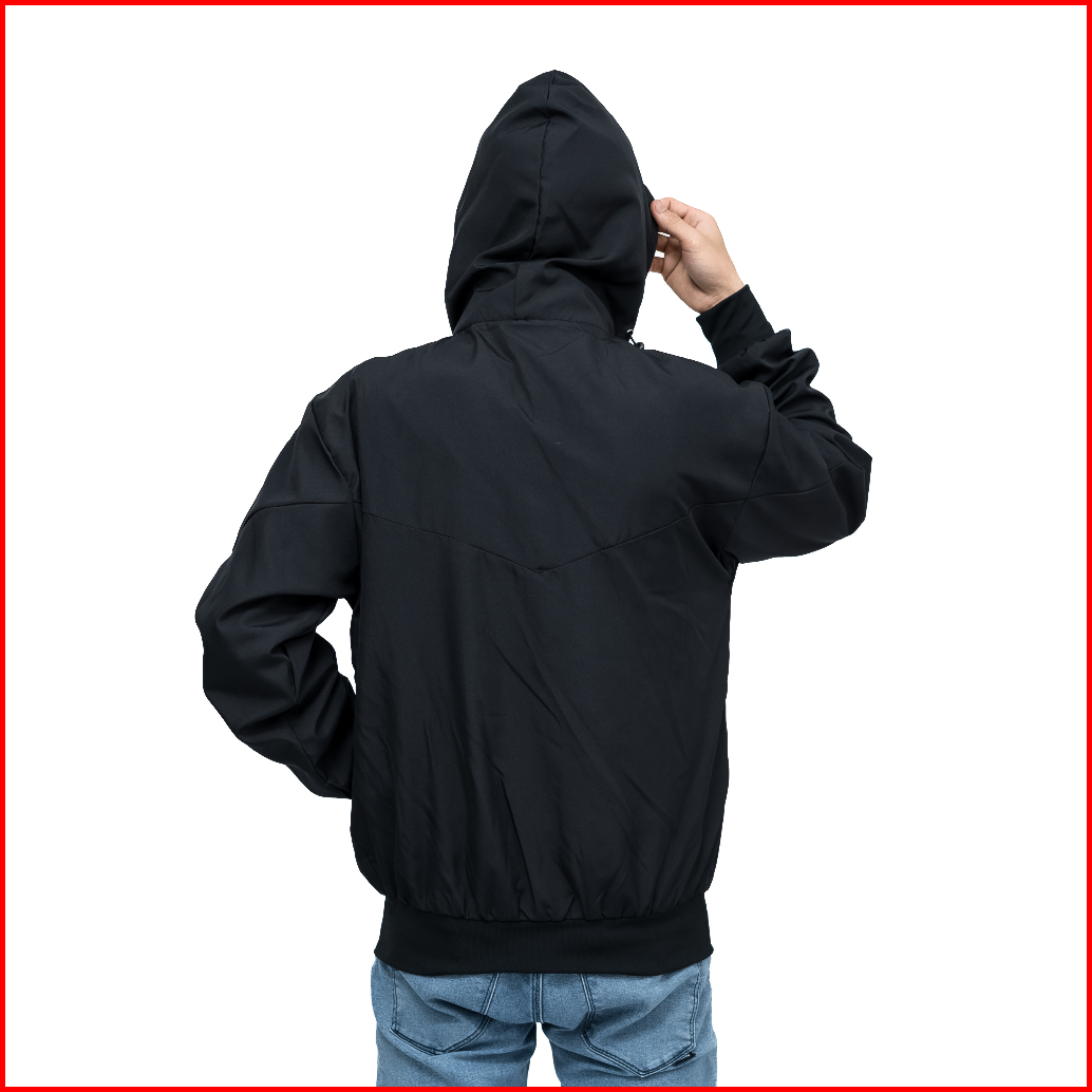 Go Shopping - Jaket Parasut Olahraga Polos Hitam Jacket Lari Running Pria Wanita