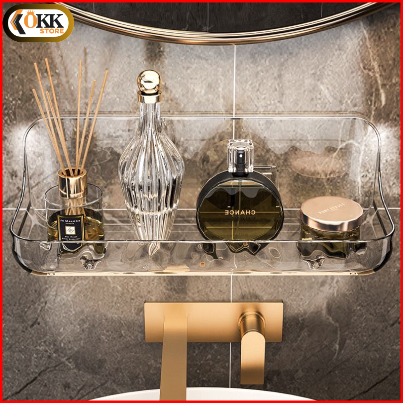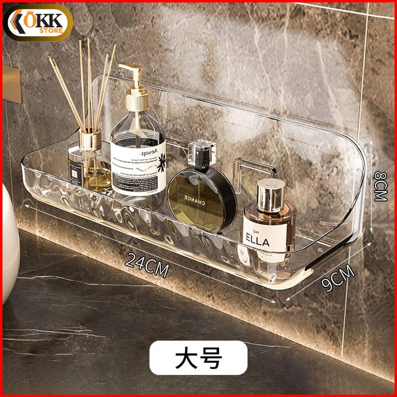 Okk Rak Tempel Dinding Kamar Mandi Akrilik Transparan Tanpa Bor Rak Serbaguna Sabun Botol