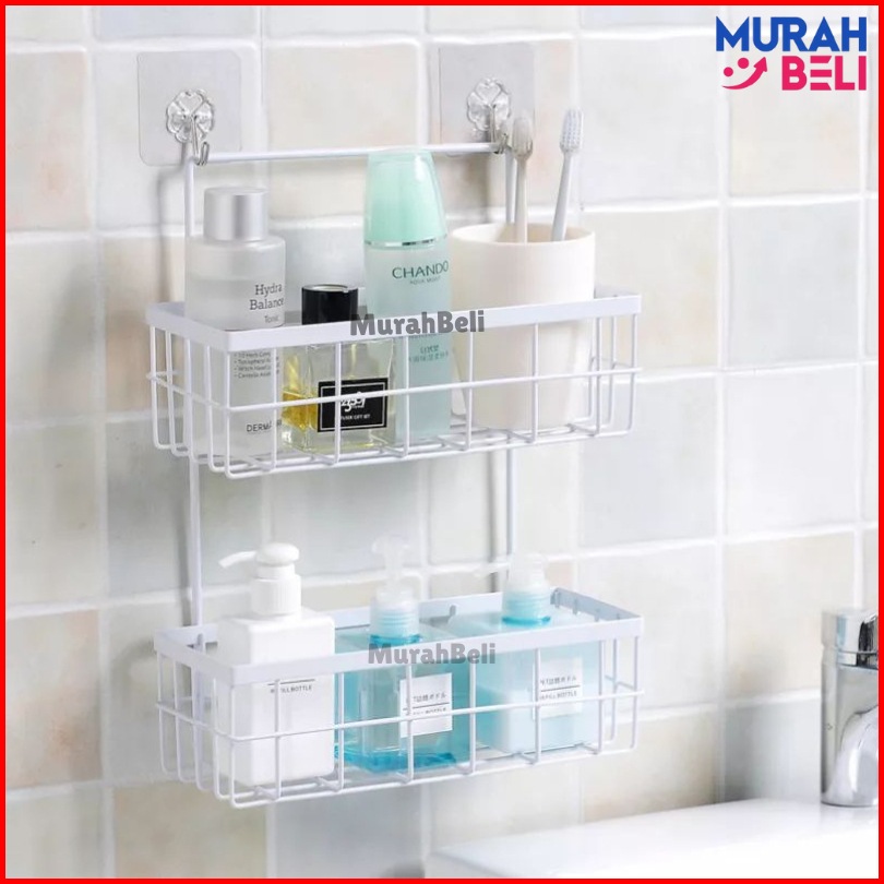Mb Rak Kamar Mandi 2 Tingkat Rak Dapur 2 Tingkat Tempel Dinding Anti Karat Rak Tempat Penyimpanan Rak Sabun Serbaguna