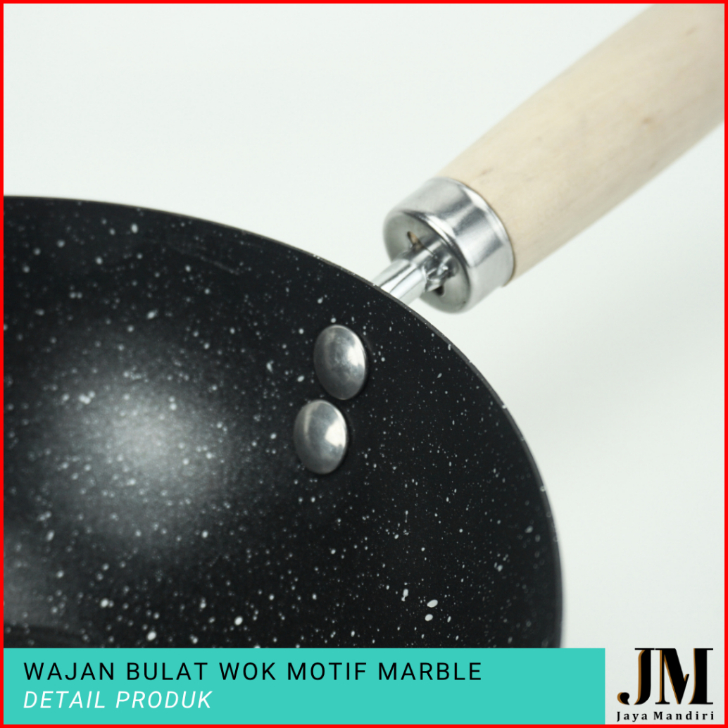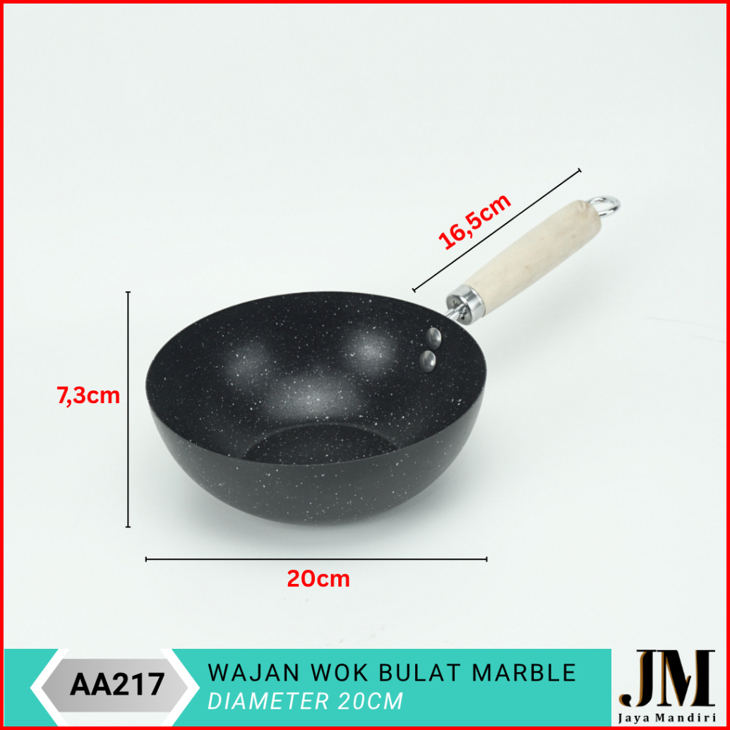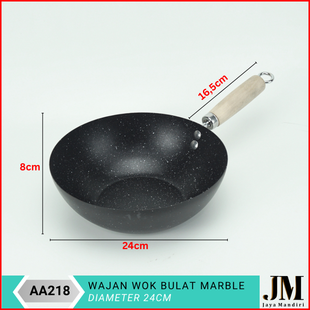 Wajan Wok Granite Anti Lengket 20 Dan 24 Cm Teflon Gagang Kayu Frypan Marble Non Stick Pan Aa217