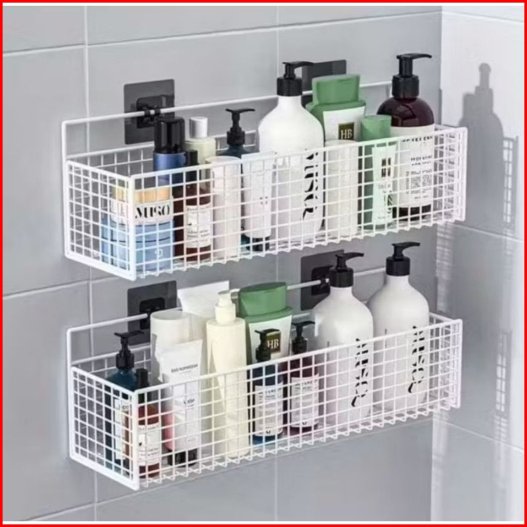 Rak Keranjang Kamar Mandi Keramik Kuat Dan Kokoh Anti Karat Rak Kamar Mandi Tempel Dinding Rak Bumbu