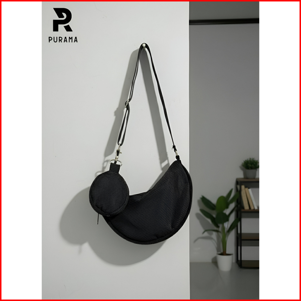 Purama - Tas Slempang Corduroy Wanita Pria Sling Bag Kekinian Ukuran Mini 26x16 Cm Resleting