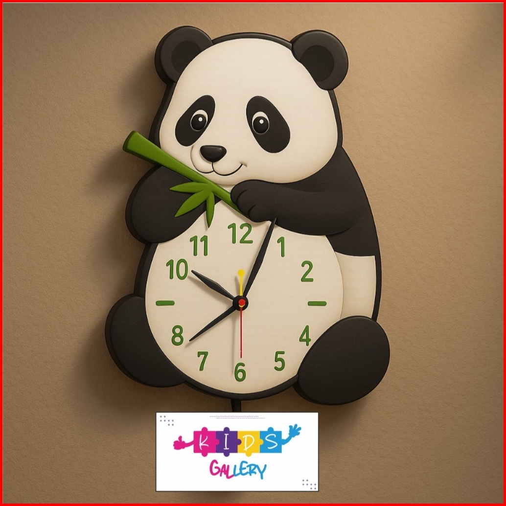 Kidsgalleryid - Jam Dinding Kayu Karakter Kartun Panda Dekorasi Pajangan Ruangan Minimalis Binatang Lucu Imut