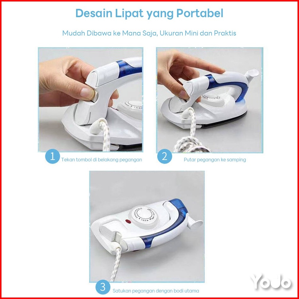 Setrika Uap Listrik Steam Iron Mini Lipat Gosokan Pakaian Praktis Portable Untuk Travelling Cepat Panas Anti Kusut