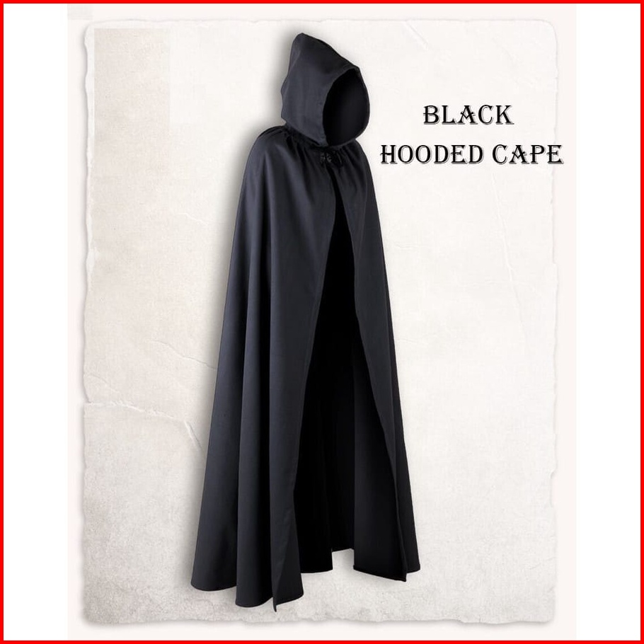 Cosplay Jubah Hitam Polos Plus Hoodie Kostum Halloween Pria Dan Wanita