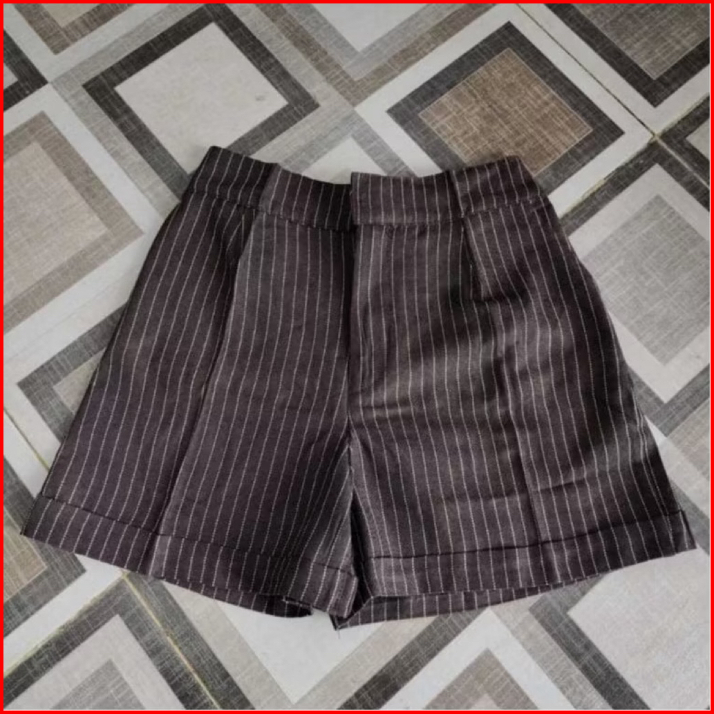 Hotpants Strip Celana Pendek Wanita Salur Highwaist