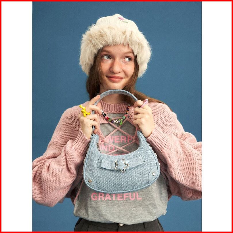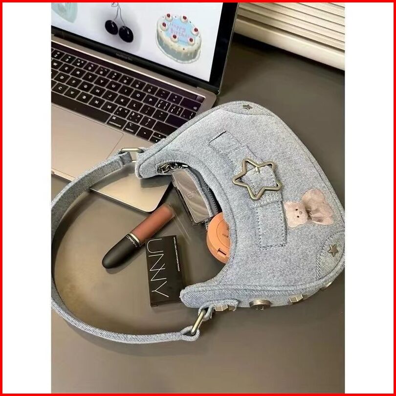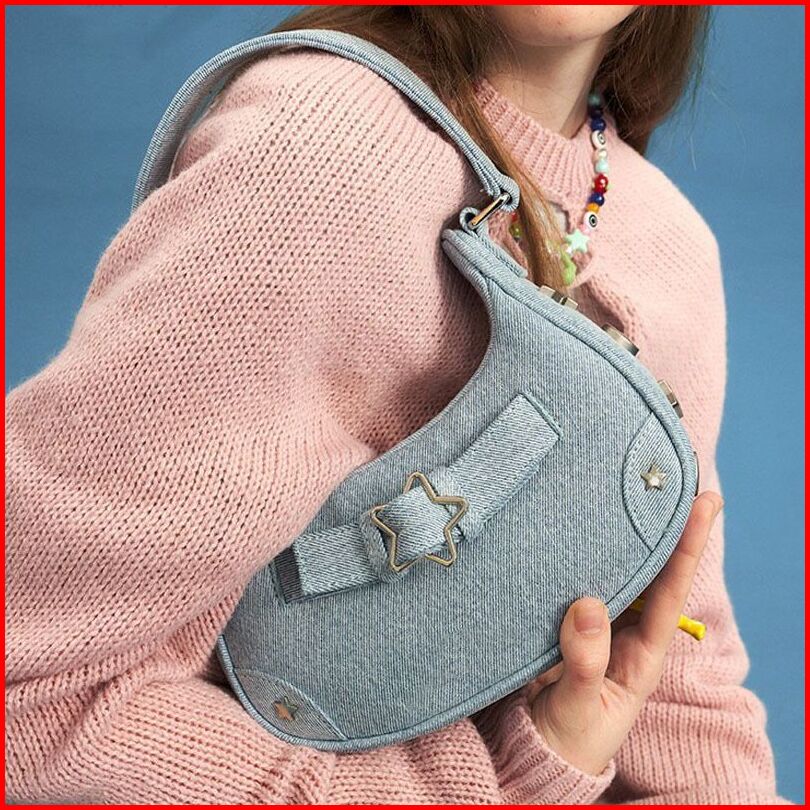 Tas Bahu Wanita Pesta Simpel Jalan Jalan Mall Casual Jeans Fs22 21.5cm X 6cm X 11cm Korean Kpop