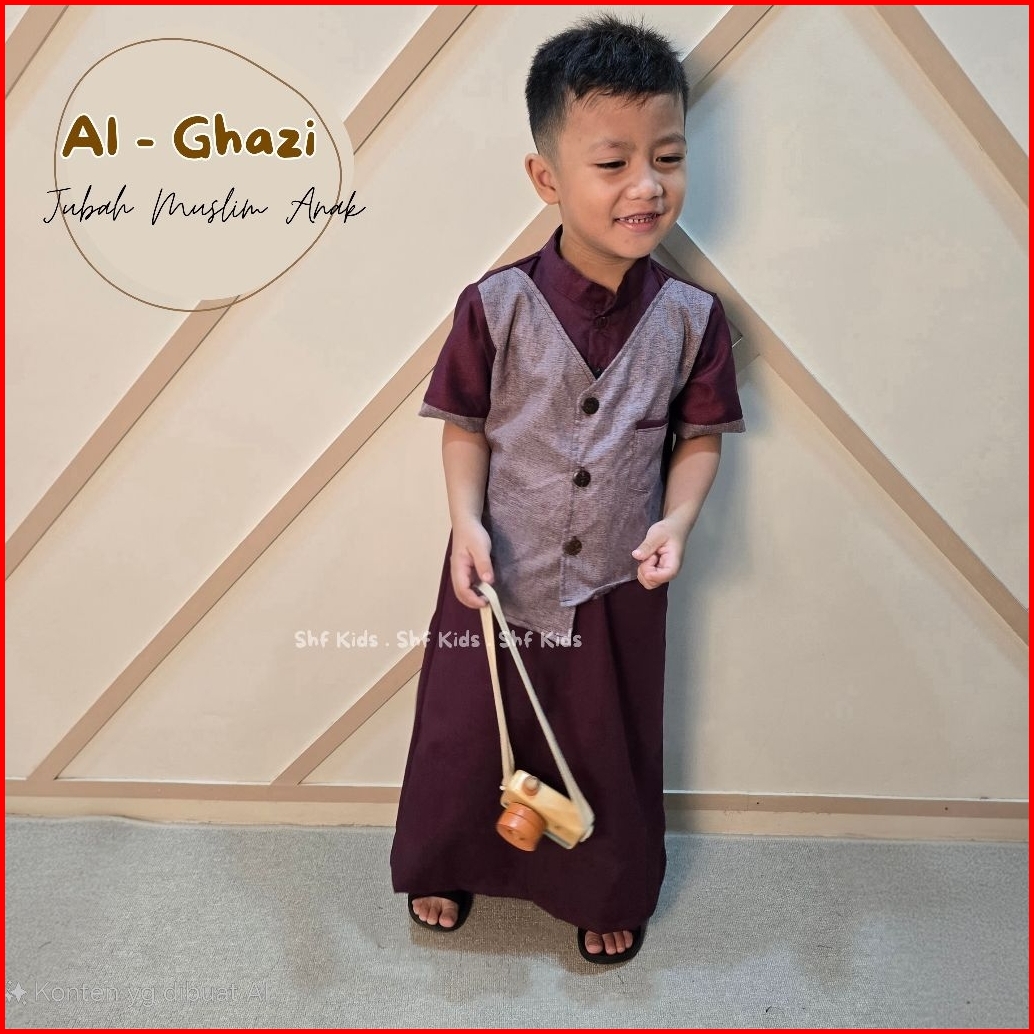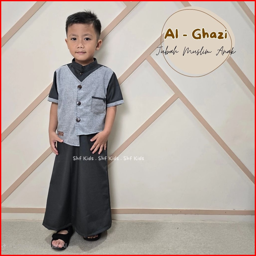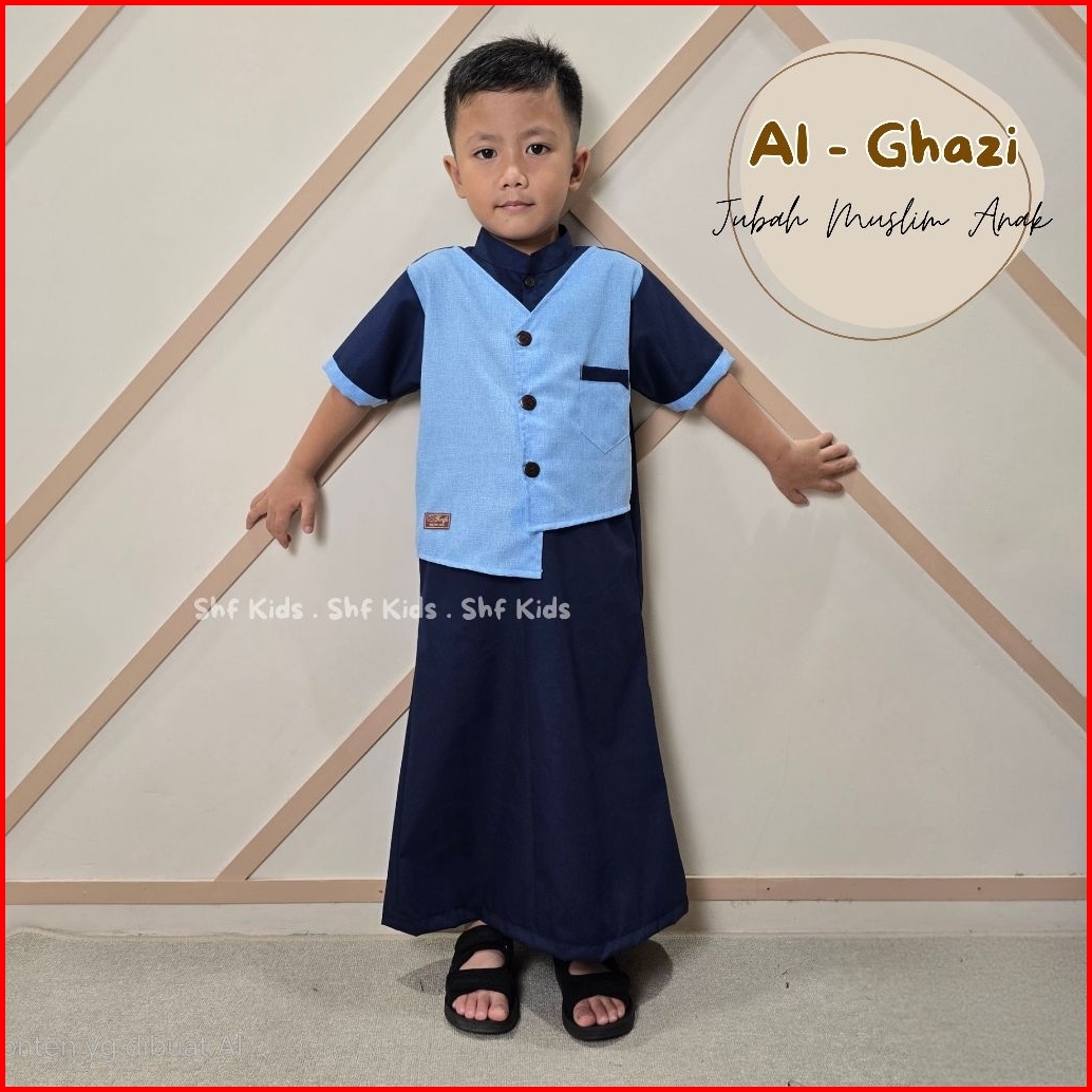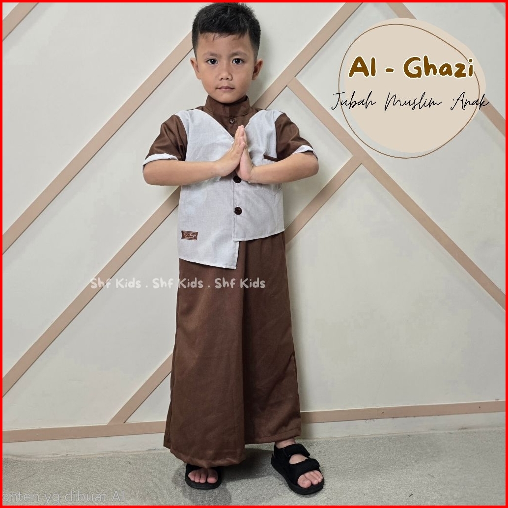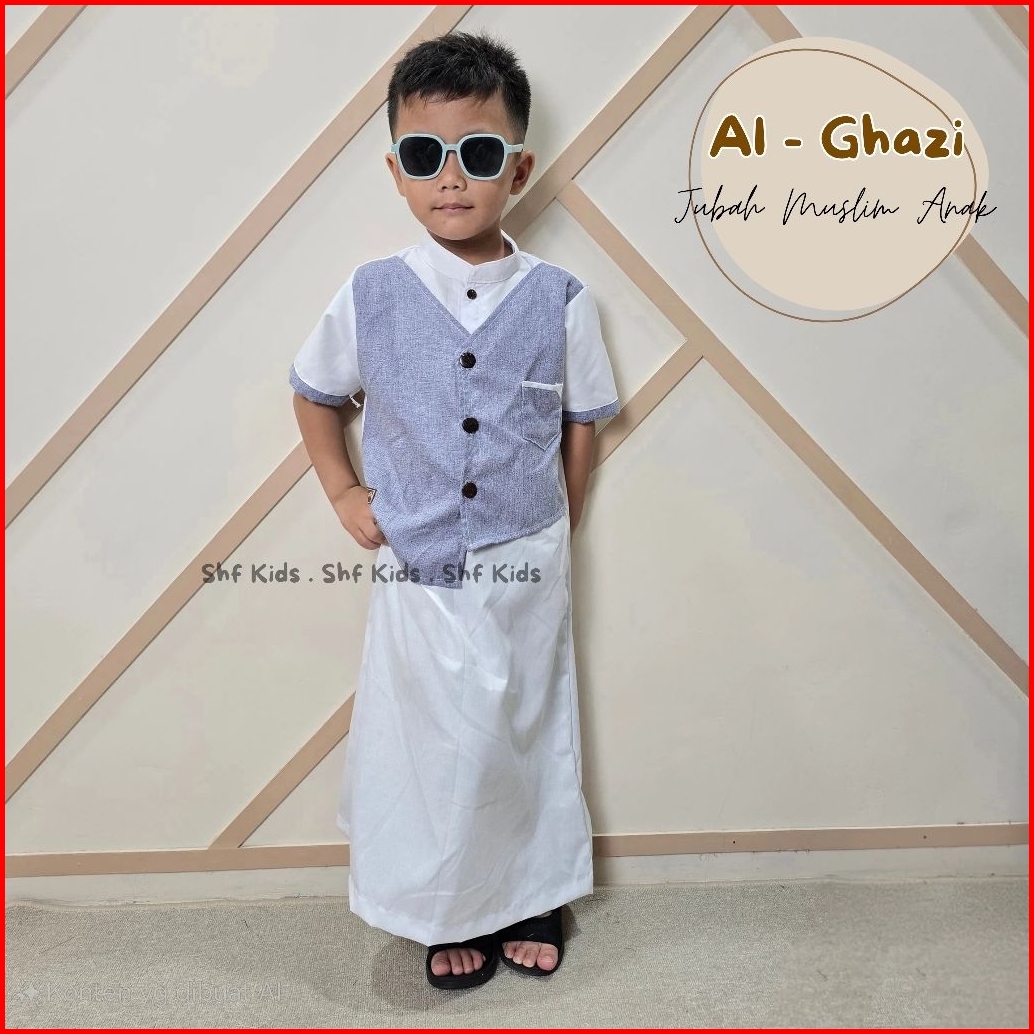 Shf Kids - Koko Jubah Rompi Muslim Anak Laki-laki 1 - 10 Tahun Lengan Pendek Baju Koko Katun Setelan Lebaran Umroh Haji
