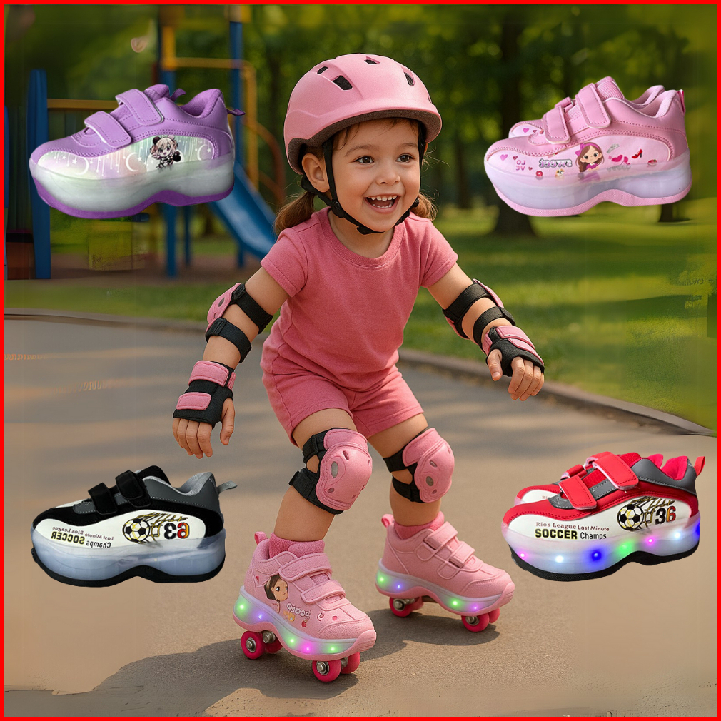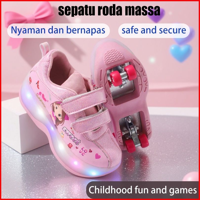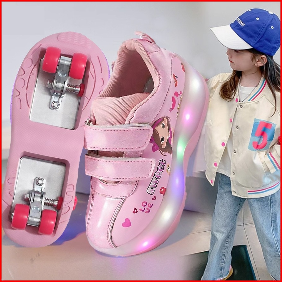 Sepatu Roda Led Anak 4 Roda Model 2in1 Multifungsi Bisa Dilepas Desain Imut Aman Untuk Bermain