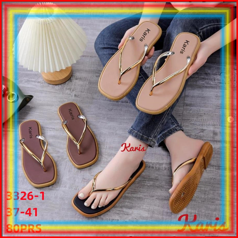 3326-1 Sandal Jepit Wanita Tali Kilap Karis Sendal Japit Cewek Karet Tali Glosy Glossy Glanzton
