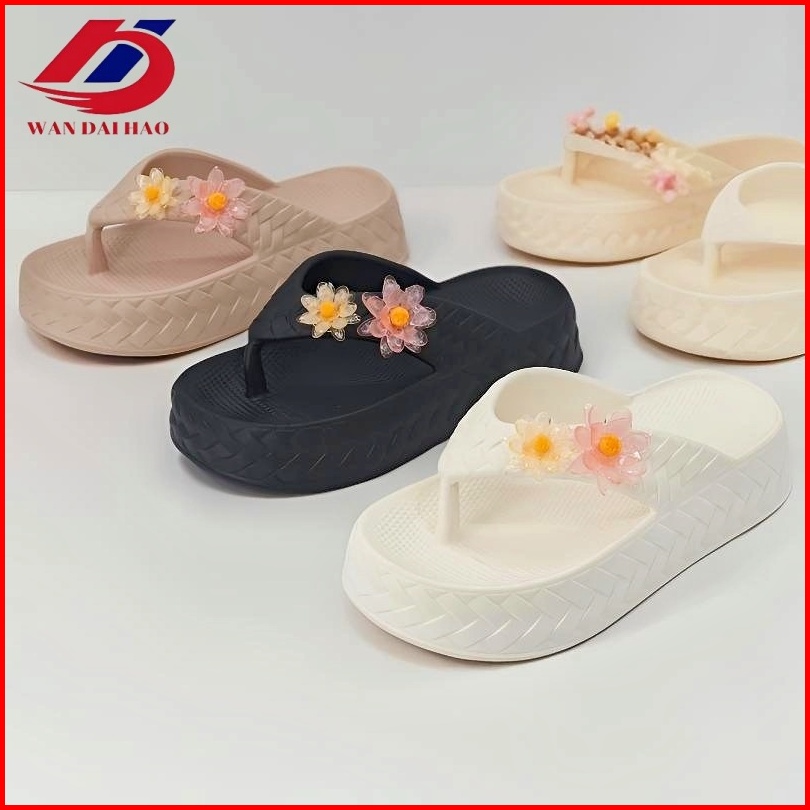 Wan Dai Hao Sandal Jepit Wedges Wanita Tinggi Korea Premium Tebal Ringan Kokoh Nyaman Empuk Karet Sandal Wanita Kekinian