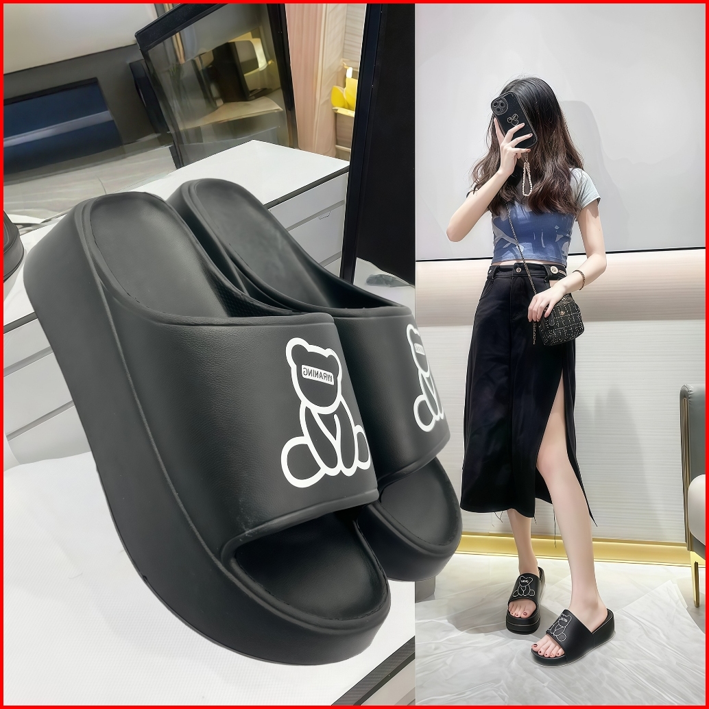 Sandal Selop Ukuran 30-41 Wanita Bear Wraning Viral Kekinian Anti Slip Bahan Karet Eva Jelly Anti Slip Anti Licin Shoes