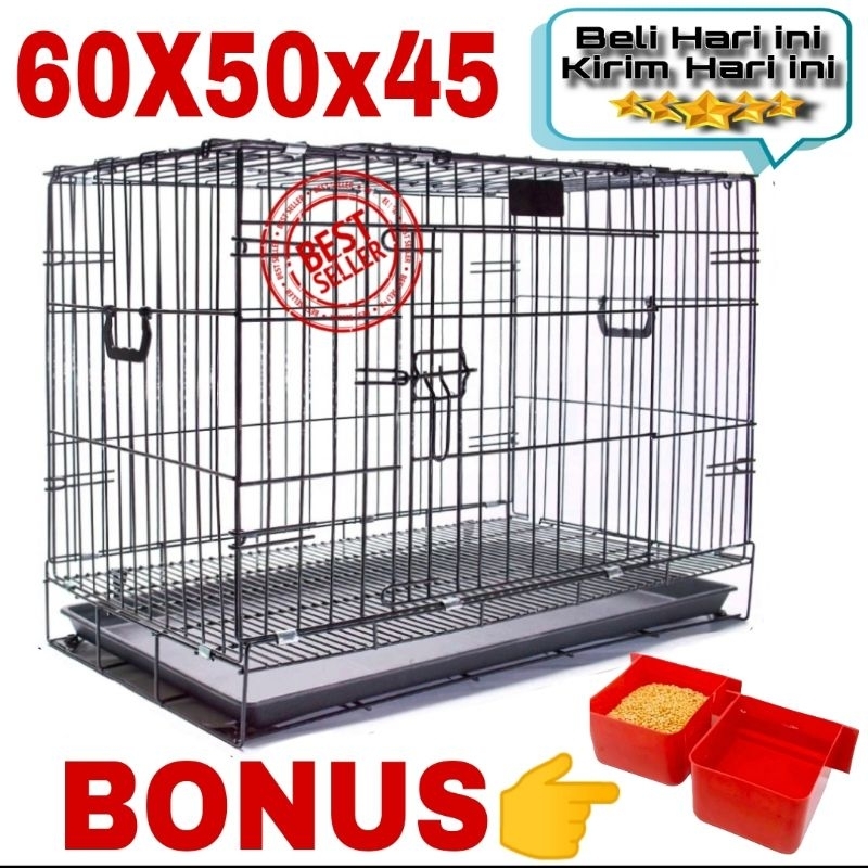 sangkar kucing Tingkat 2 ( 75X50X45 ) BONUS tempat makan 2 pcs
