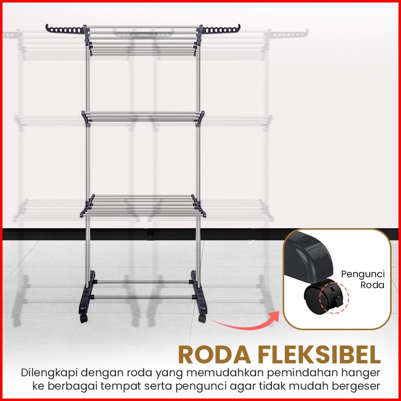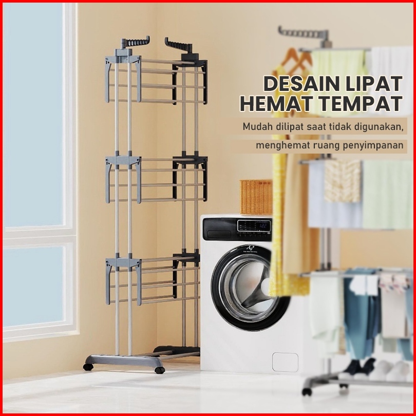 Jemuran Baju Lipat Dengan Gantungan 4 Level Drying Rack Jemuran Menara Stainless Pakaian Basah B03a