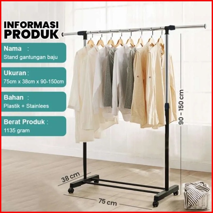 Jemuran Baju Single Pool Rak Besi Stainless Jemuran Pakaian Stand Hanger Besi Stainless Dgyj-1