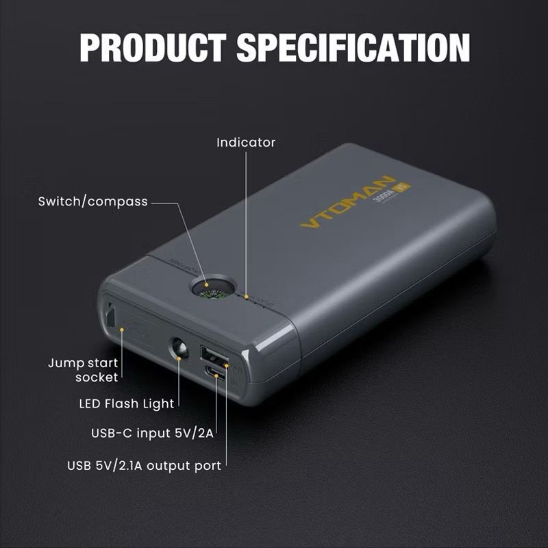 VTOMAN X1 Pro 10000 mAh | 32Wh Jump Starter Aki Powerbank Pompa Angin Portable Jumper Aki Mobil