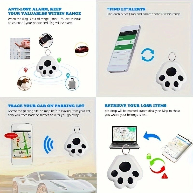 ALAT PELACAK ANJING KUCING PETS GPS TRACKER PAW SHAPE WARNA MERAH