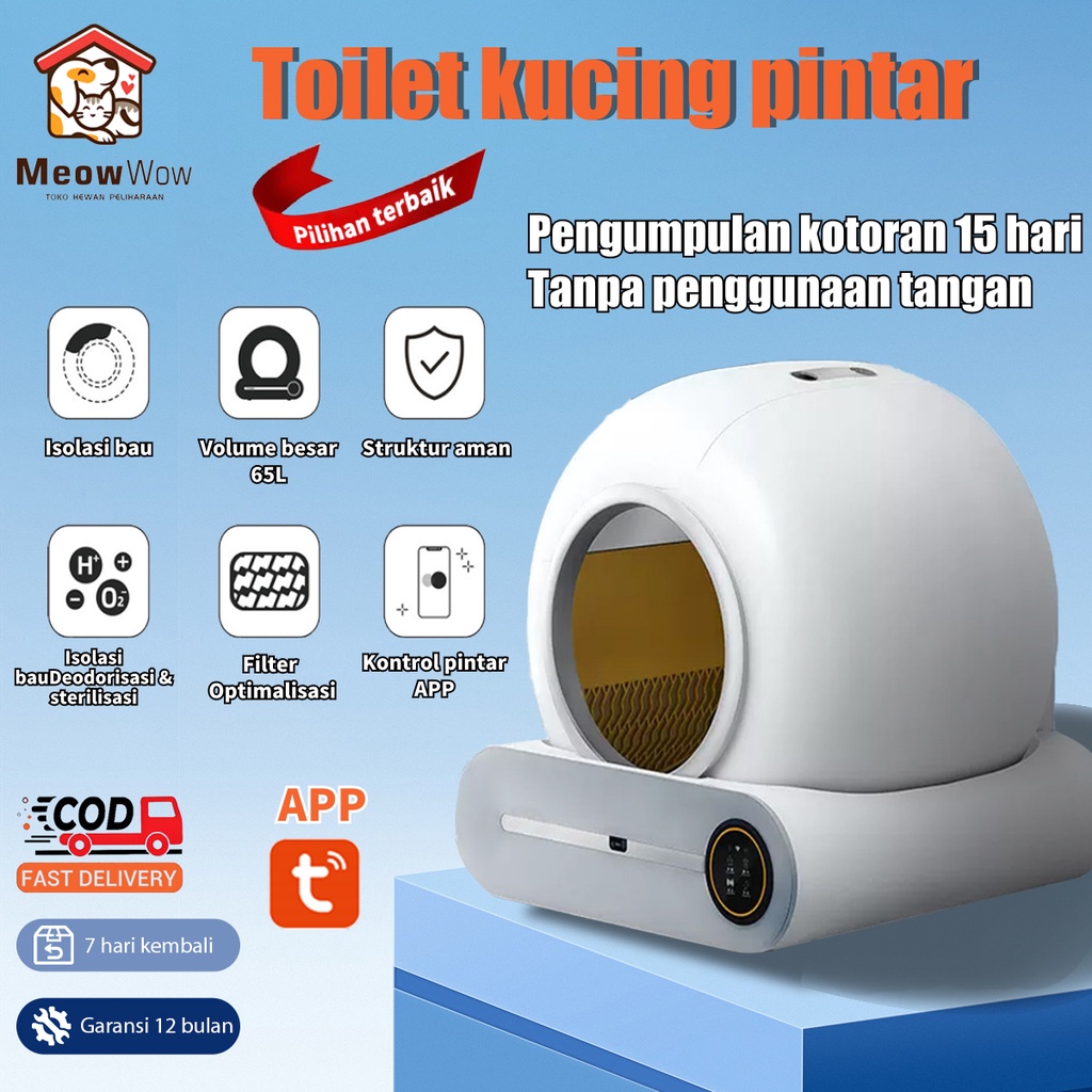 WiFi Kucing Litter Box Automatic Self Cleaning App Control Cat LED screen Cat Toilet Deodorization Cat Sandbox Big Size