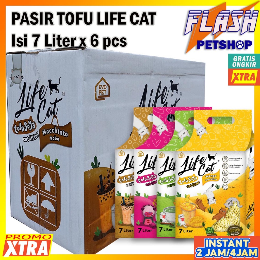 LIFE CAT pasir Kucing gumpal Tofu, lifecat Cat Litter Tofu 1 dus isi 6 pcs di Flash petshop