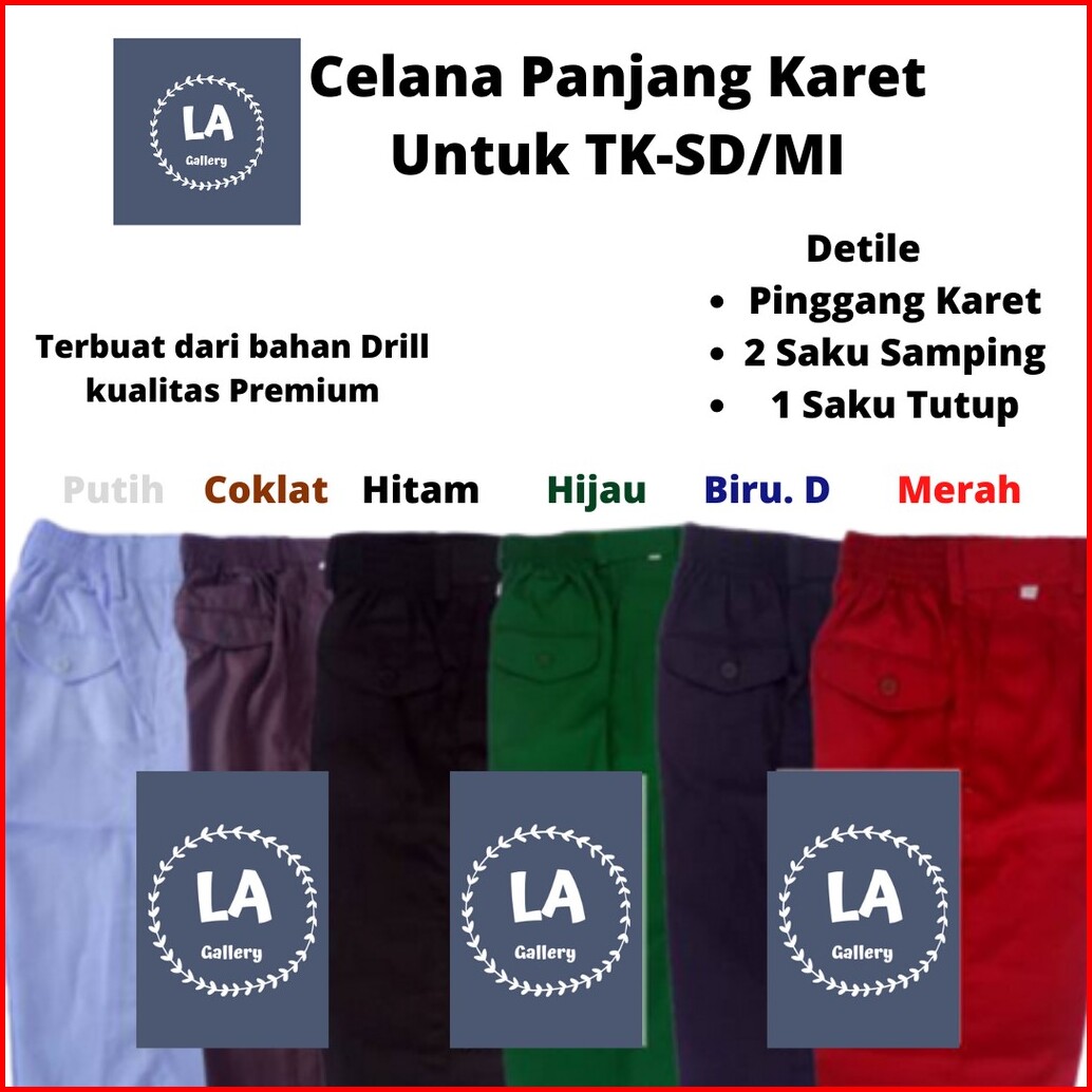 Celana Panjang Sekolah Sd Tk Sd Mi Karet Pinggang Bahan Drill Super Berkualitas