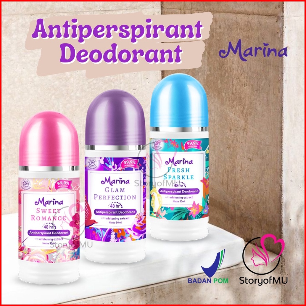 Marina Anti Prespirant Deodorant 50ml Fresh Sparkle Glam Perfection Sweet Romance Deodoran