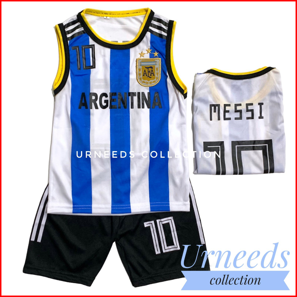 Setelan Baju Jersey Singlet Sepak Bola Anak Laki Laki 4 - 10 Tahun Terbaru Stelan Set Timnas Negara Liga Arhan Messi Ron