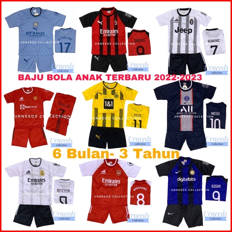 Setelan Baju Bola Home Anak Laki Laki 6 Bulan - 3 Tahun Set Kaos Jersey Futsal Pria Stelan Baju Murah