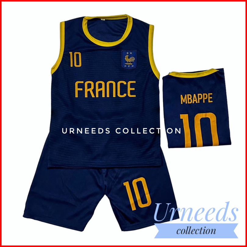 Setelan Baju Bola Anak Terbaru France Set Singlet Jersey Baju Bola Anak Laki Laki Termurah