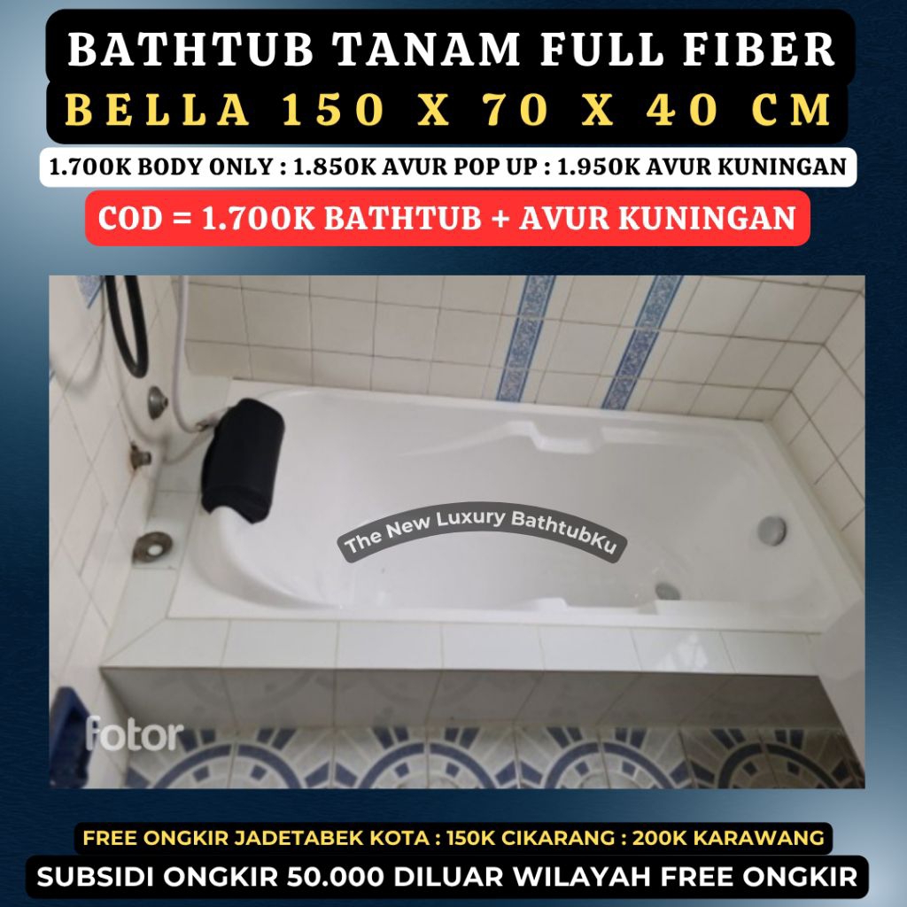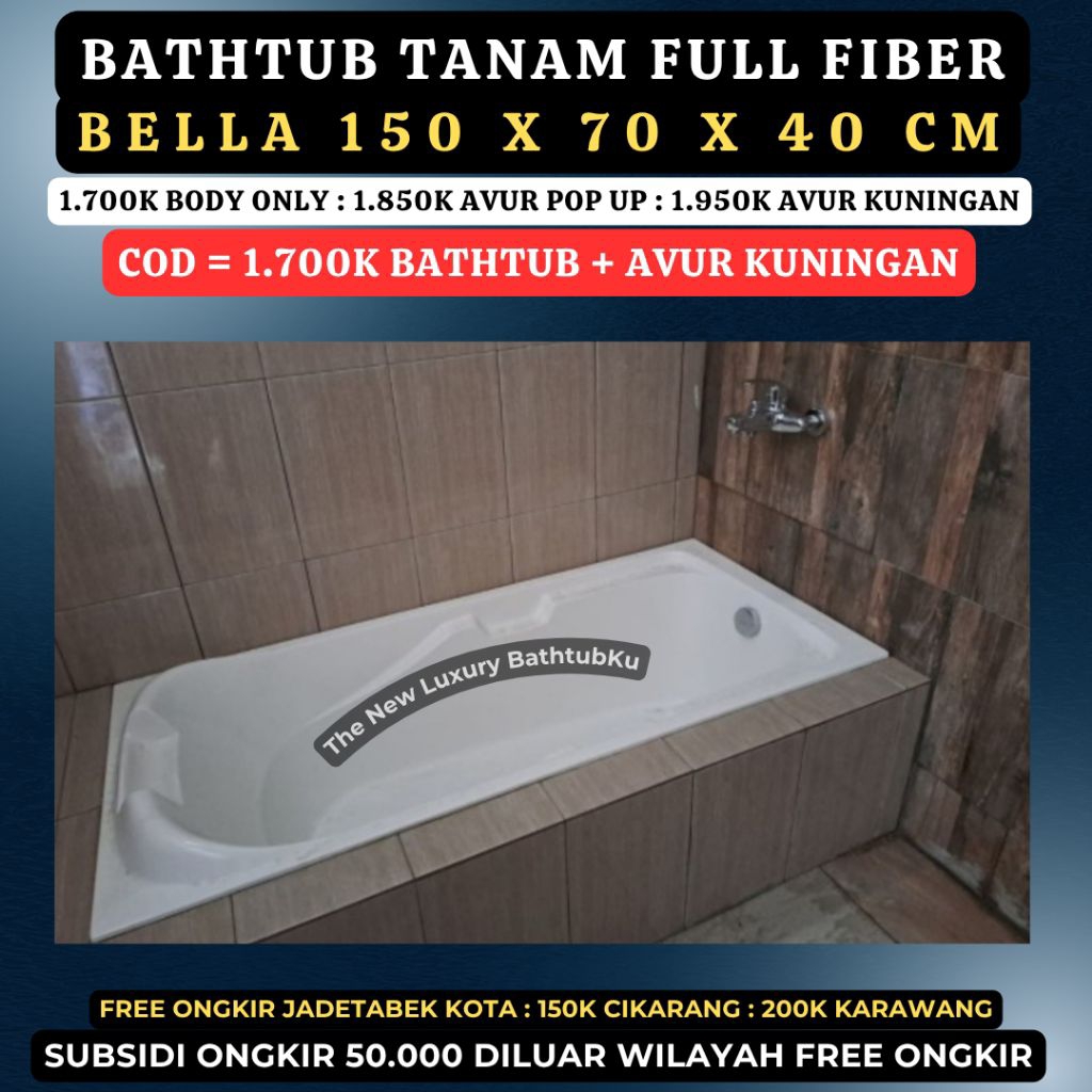 Bathtub Tanam 150x70x40 Cm Type Bella FULL FIBER, Pengiriman lebih diutamakan