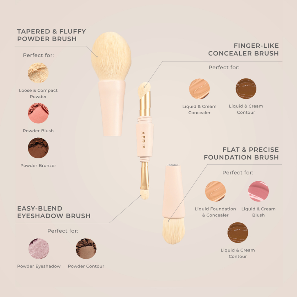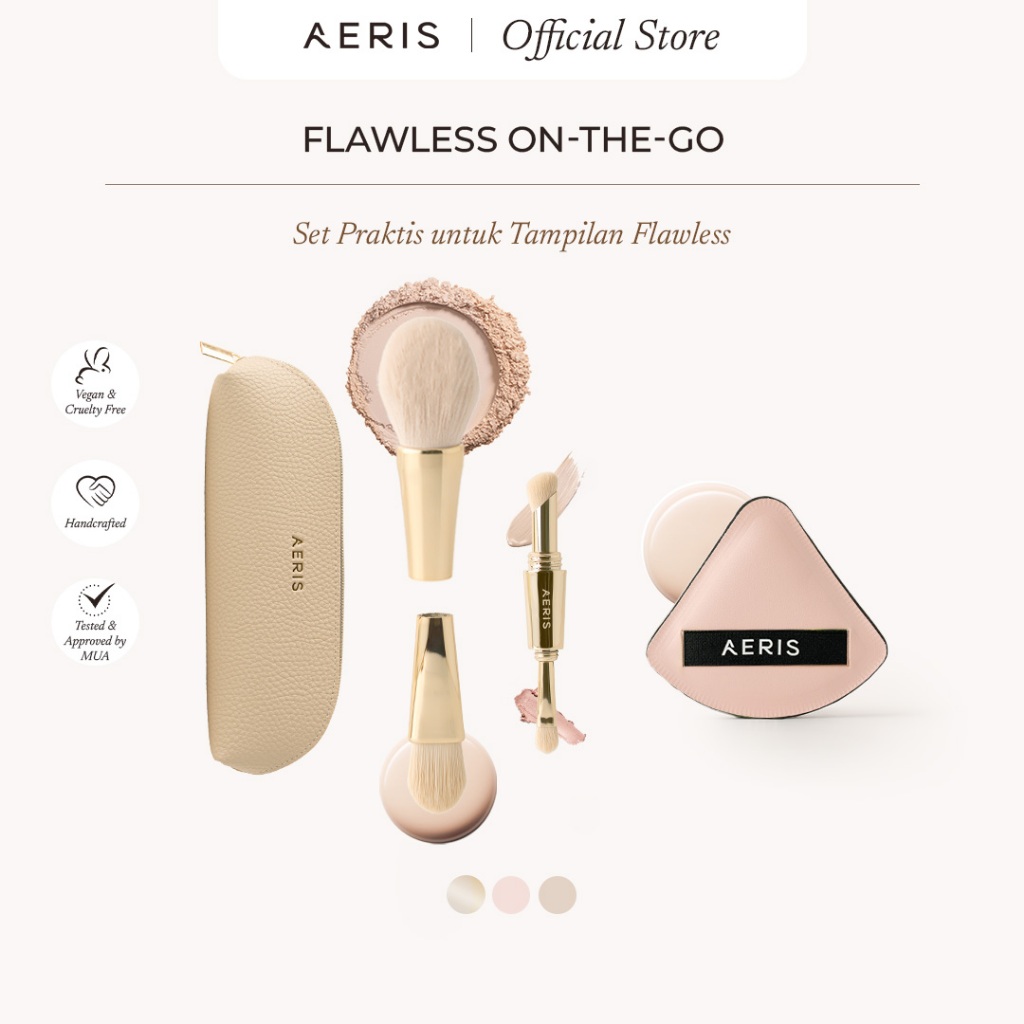 Aeris Beauté Flawless On The Go Bundle | 1 Set Bundle Paket Hemat Brush Spons Make Up Travel Portable Multifungsi