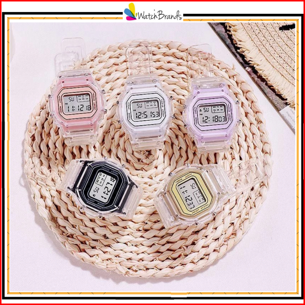 Wbs Jam Tangan Rubber Digital Segi Transparan Murah Karet Sport Led Pria Wanita Couple Jf059