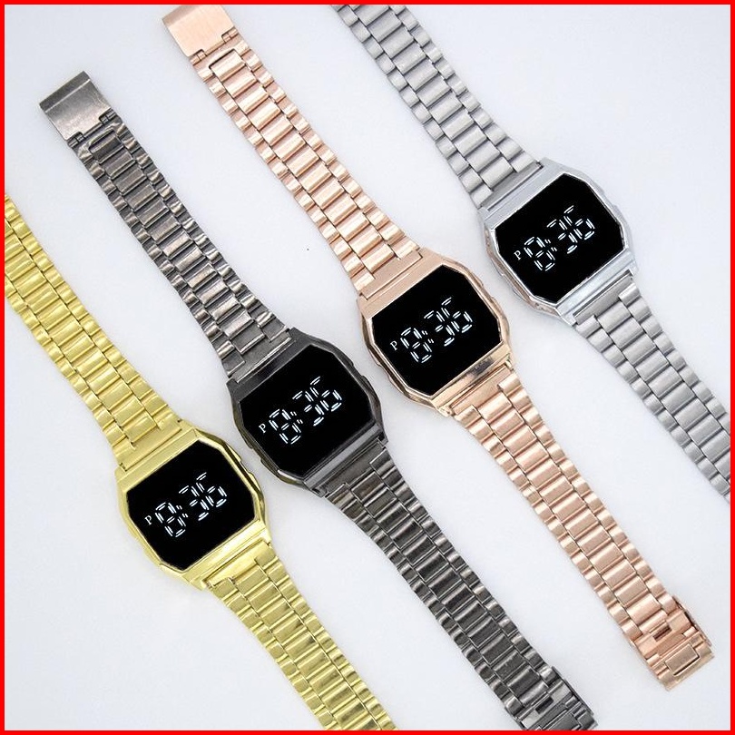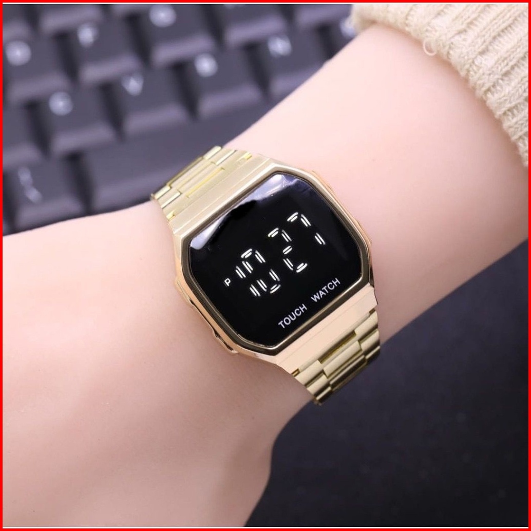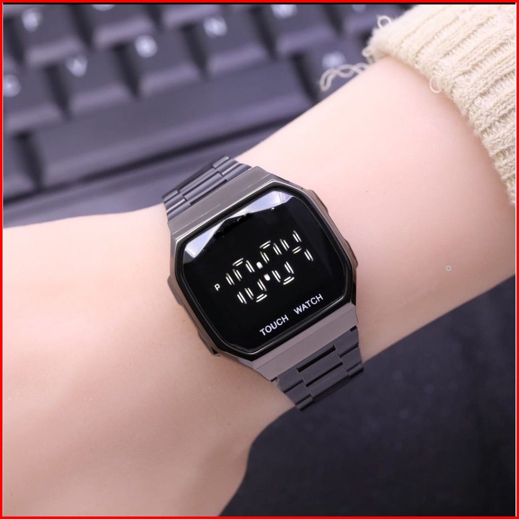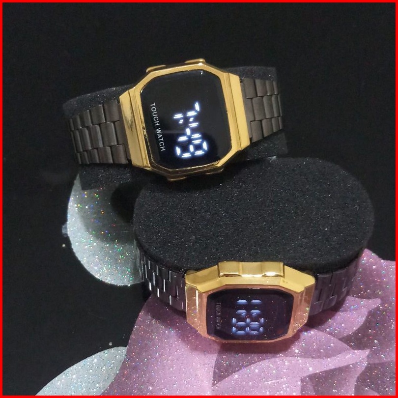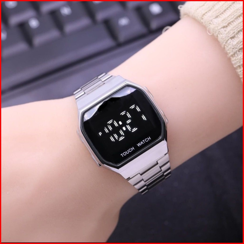 Jam Tangan Couple Pria Wanita Free Baterai Digital Grosir Murah Rubber Elektornik Touch Magnet Led W195