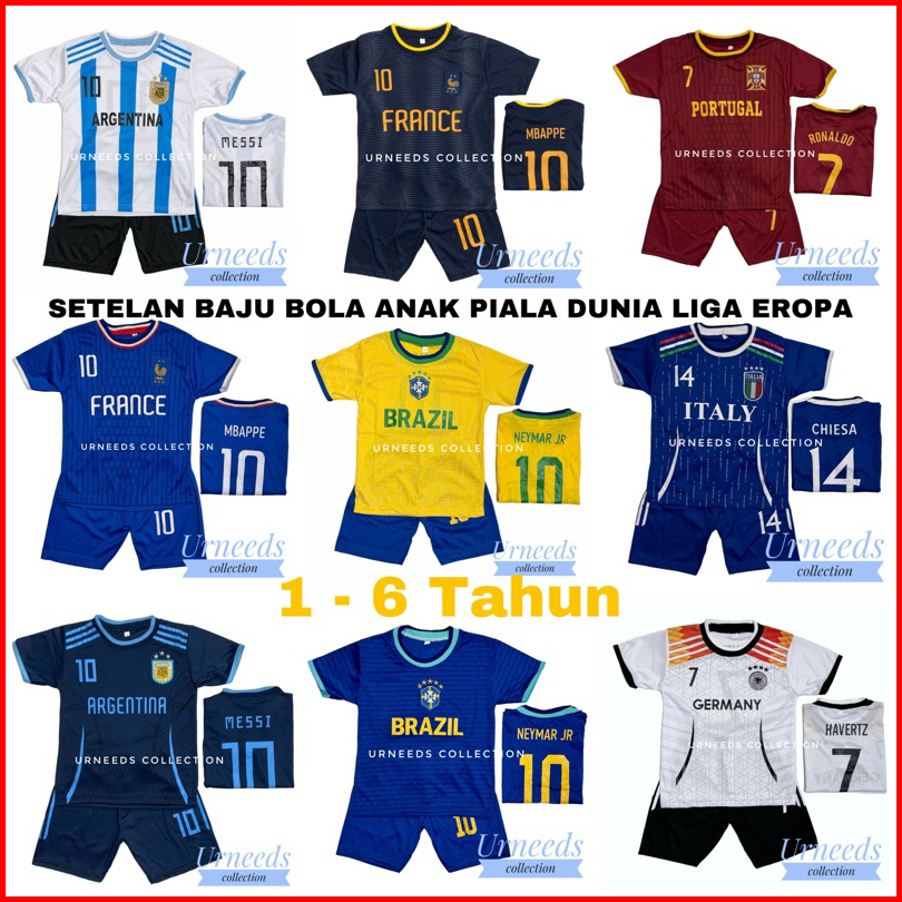 Setelan Baju Bola Anak Piala Dunia Liga Eropa Timnas Negara 6 Bulan - 7 Tahun