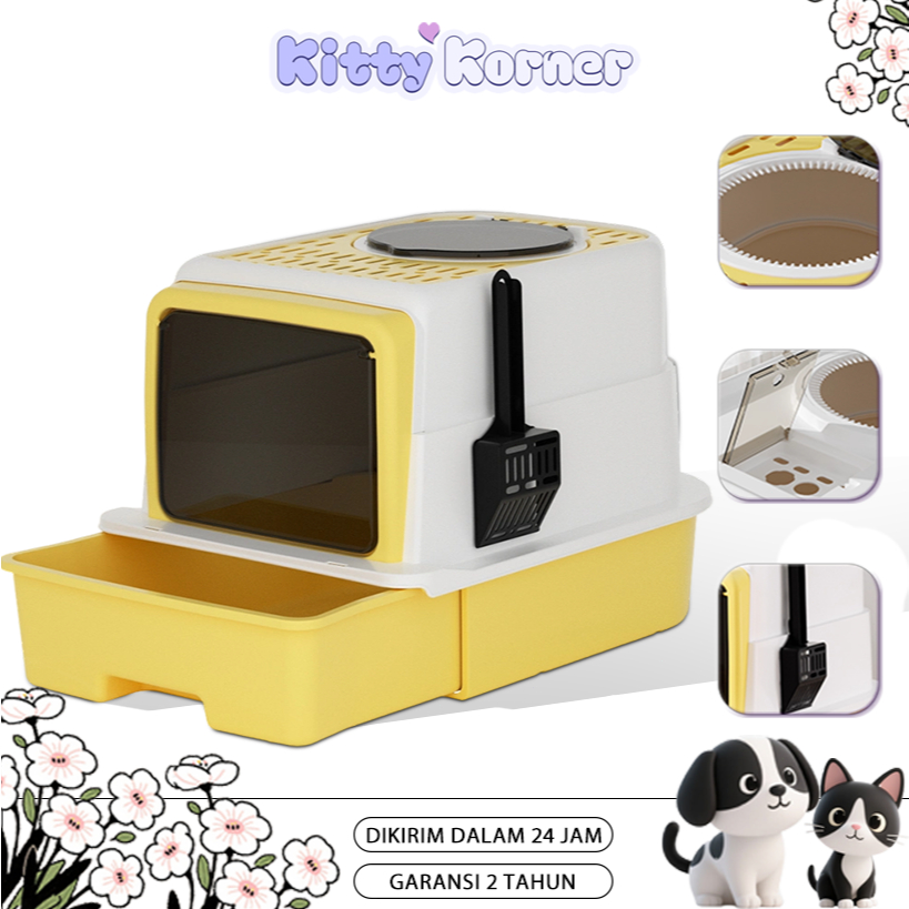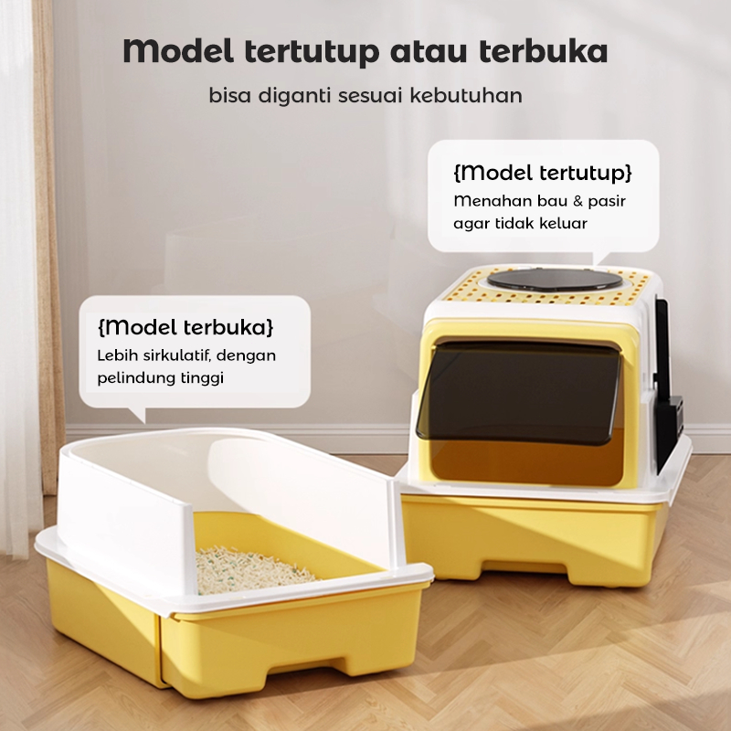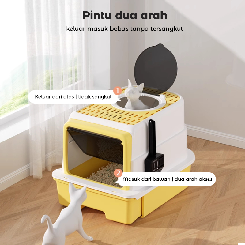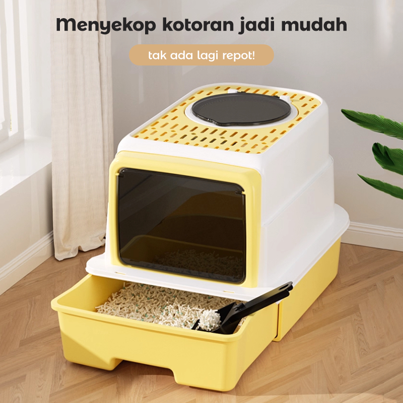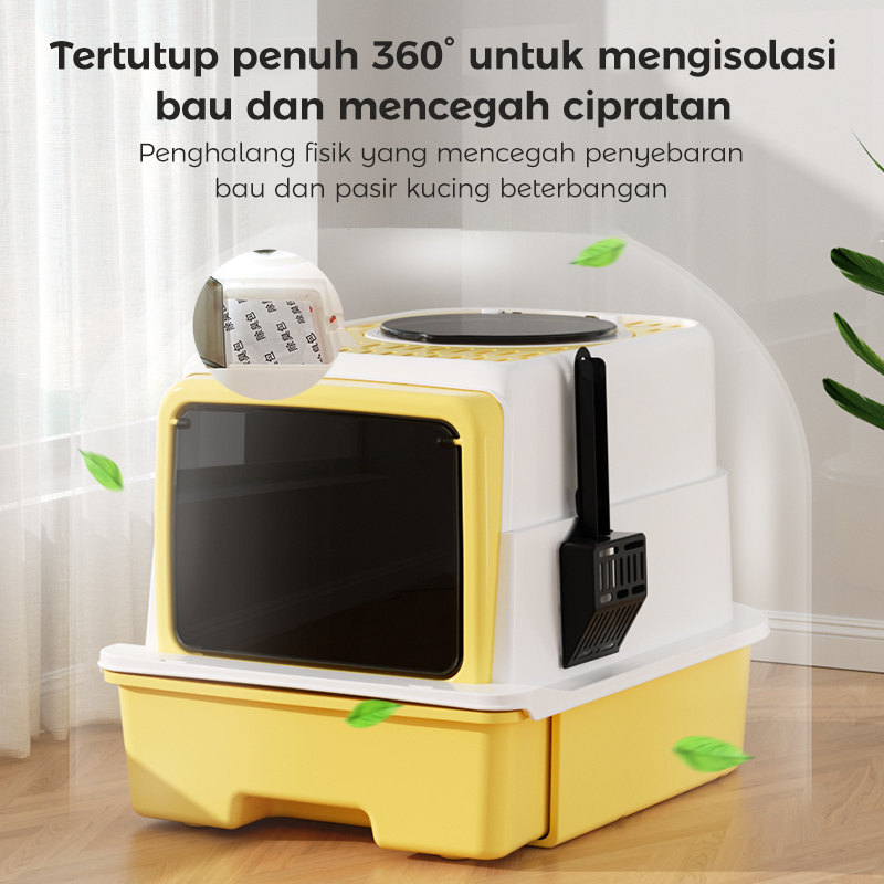 Pet Litter Box Cat Toilet Full Tertutup Tempat Pasir Kucing Penghilang bau Tempat Pup Free Sekop