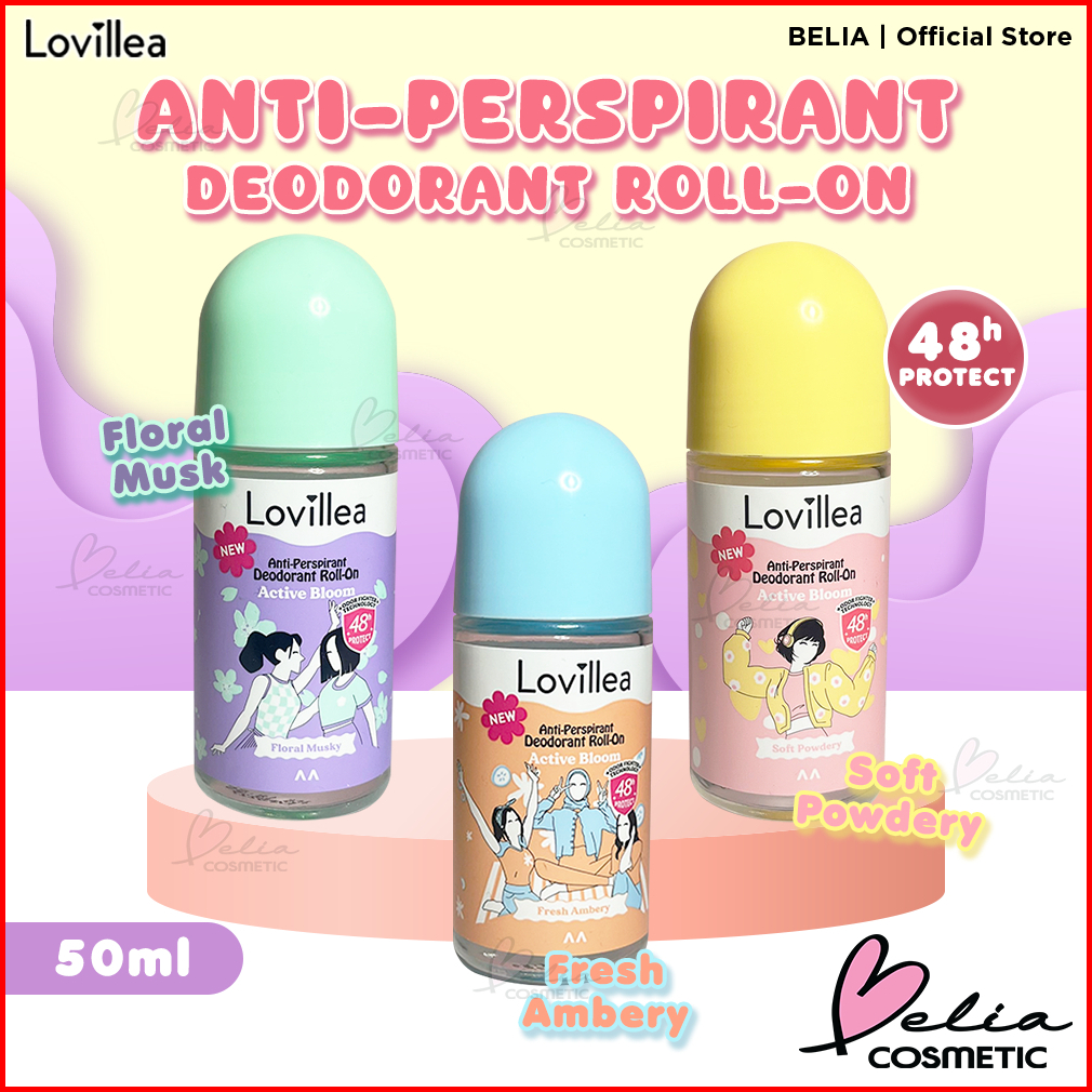 Belia Lovillea Anti-perspirant Deodorant Roll On Odor Fighter Technology 48h Protect Cepat Kering Tidak Lengket Deo Roll